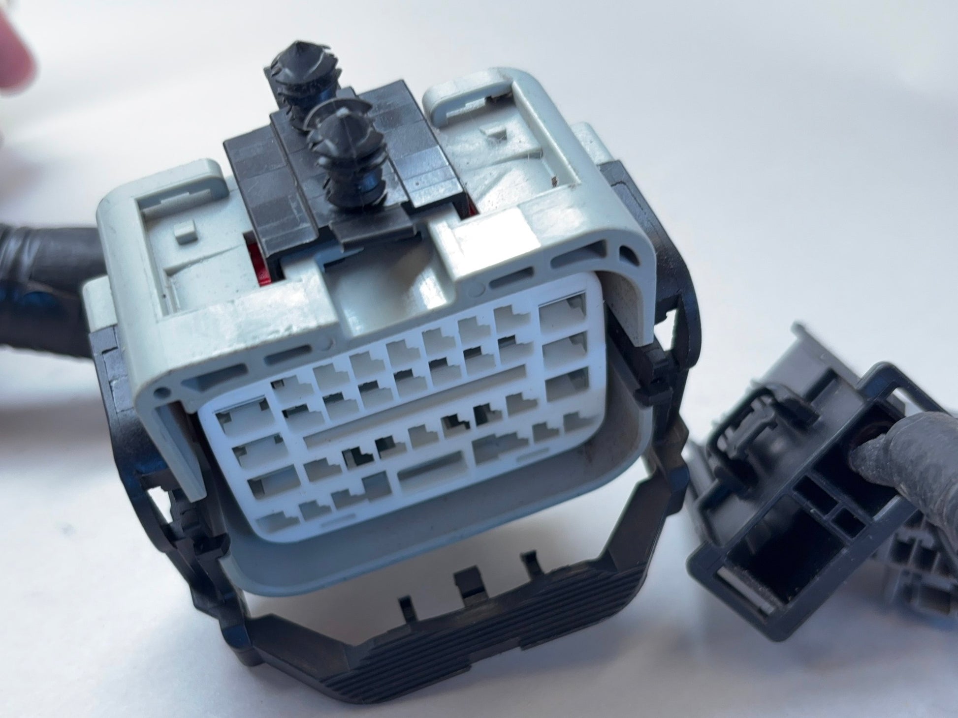 This is a used front wiring harness removed from a 2018 Ram 1500 Tradesman with a 5.7L Hemi engine and an 8-speed automatic transmission. The Mopar part number is 68360106AA. Please match your part number prior to ordering.