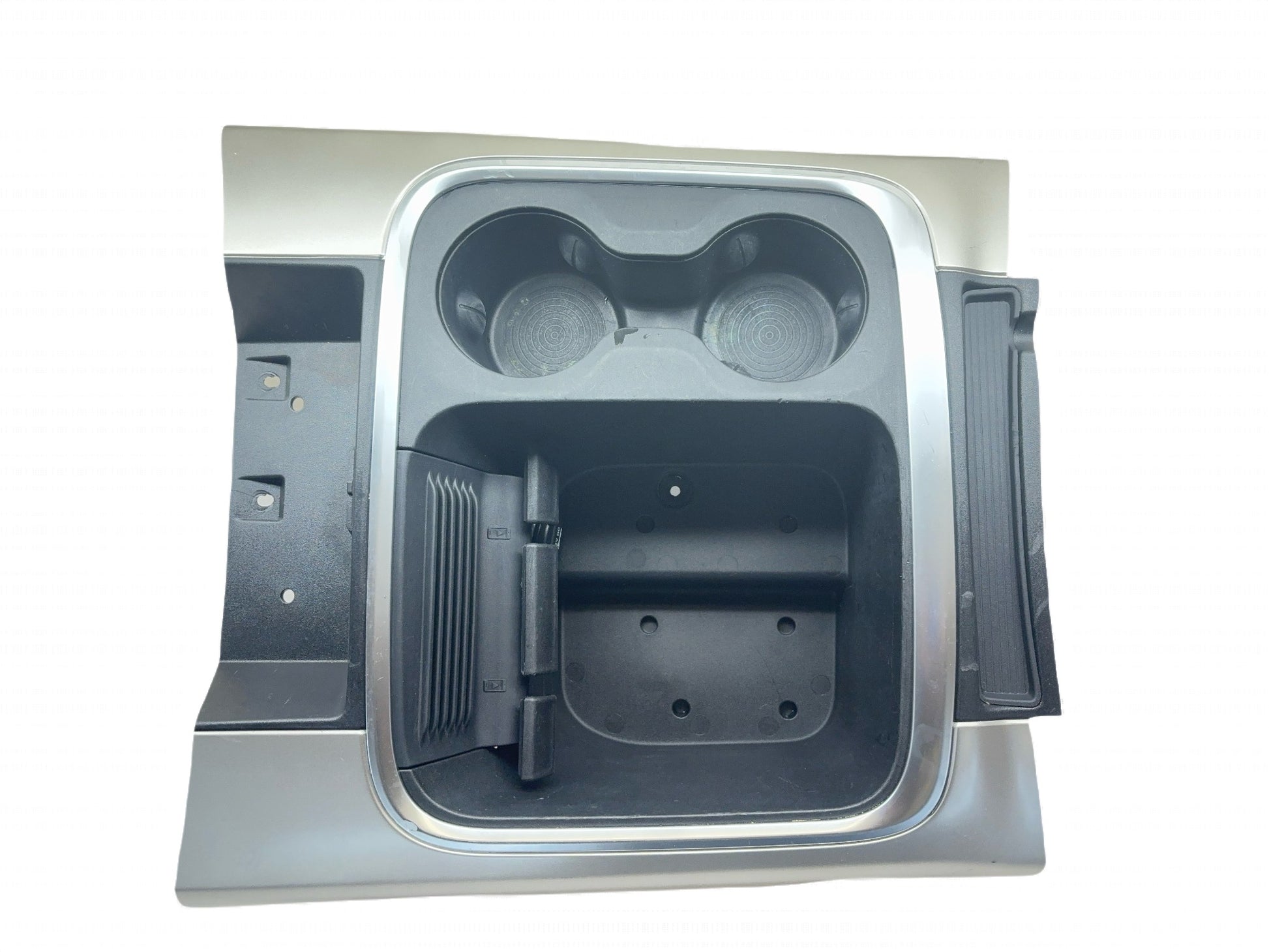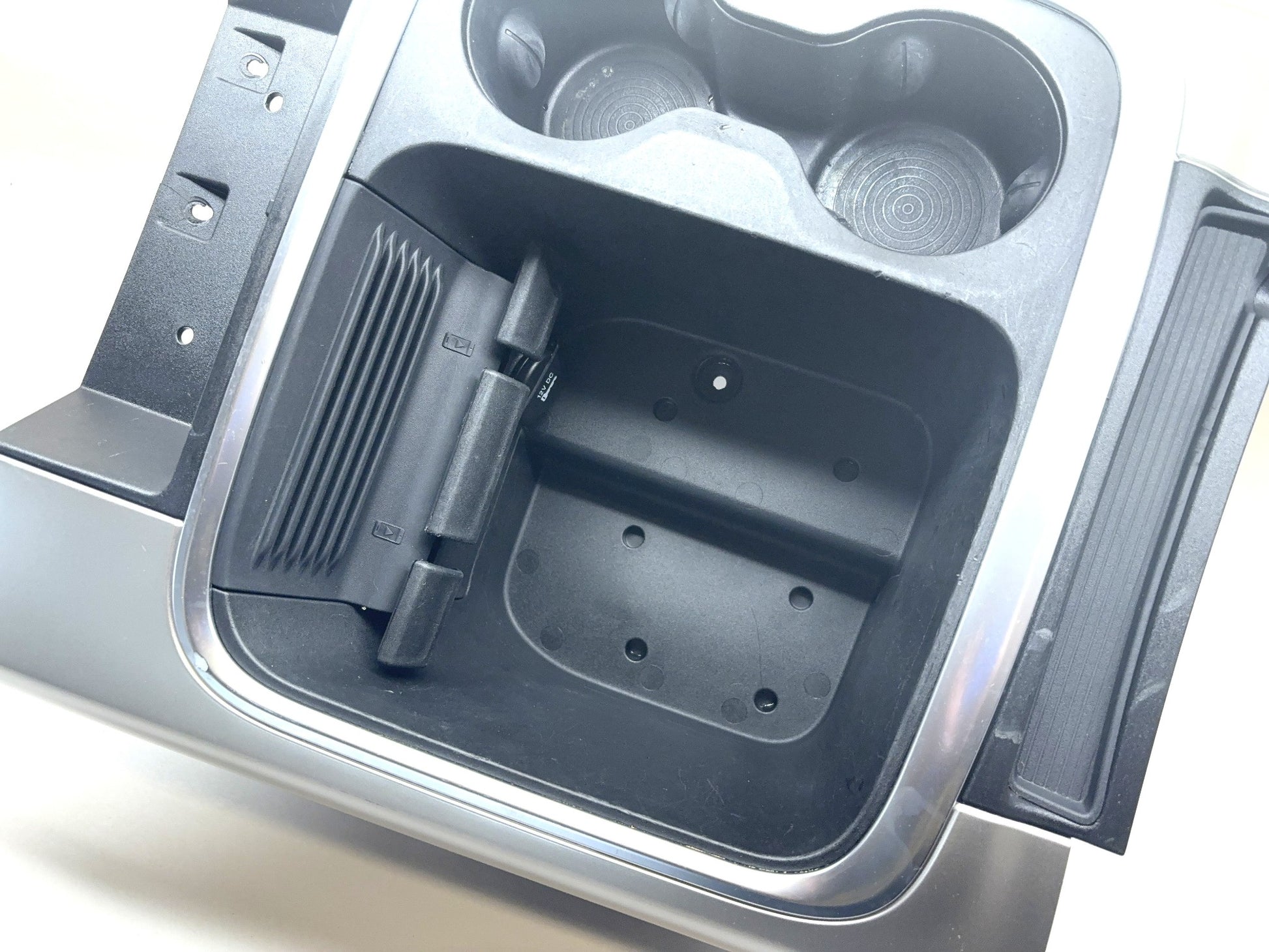 This is a used full console cupholder insert removed from a 2018 Ram 1500. The Mopar part number is 5XY511X9AB. This is in fair used condition, it will show a couple of noticeable imperfections, one mounting tab has a crack.