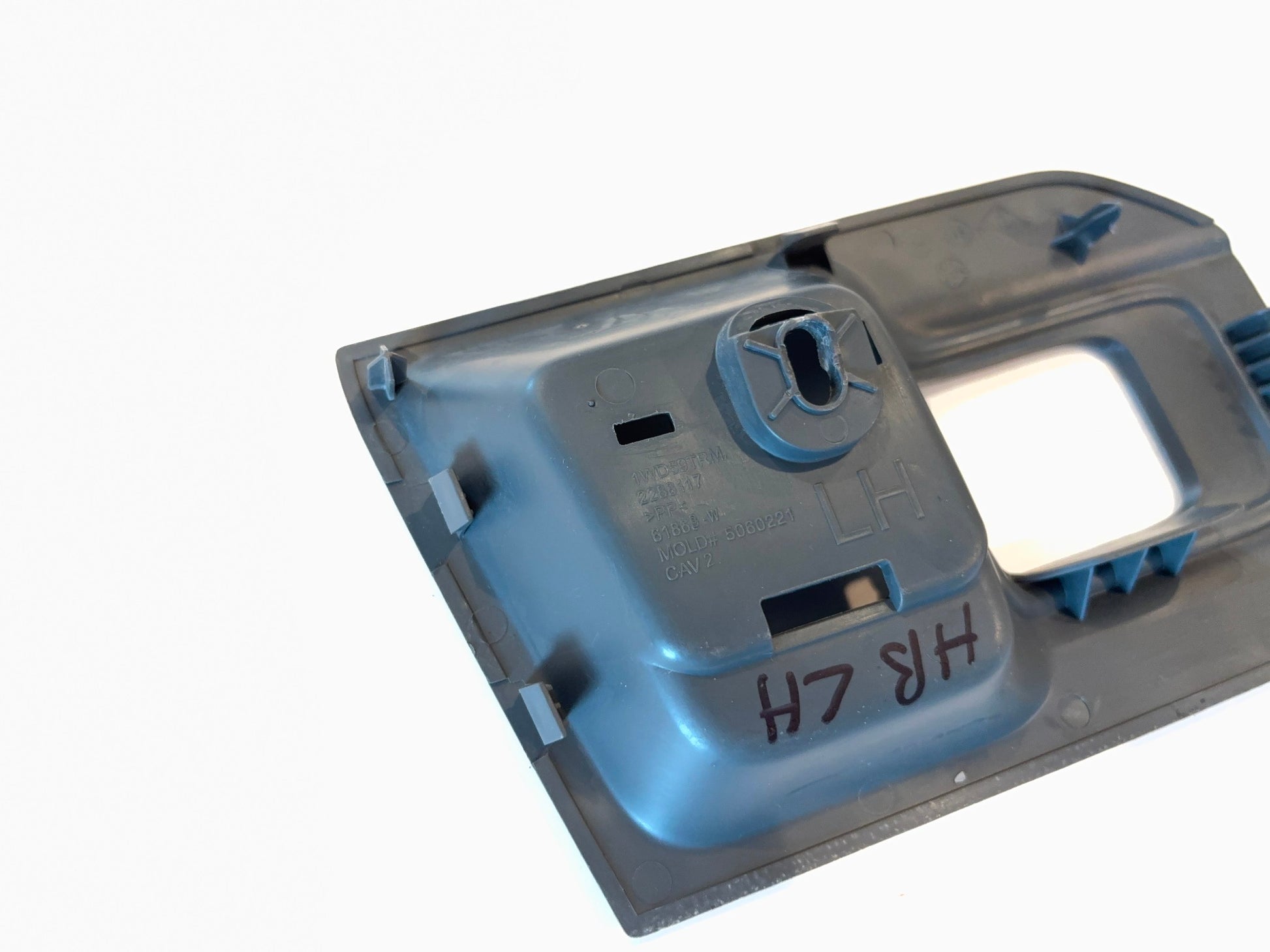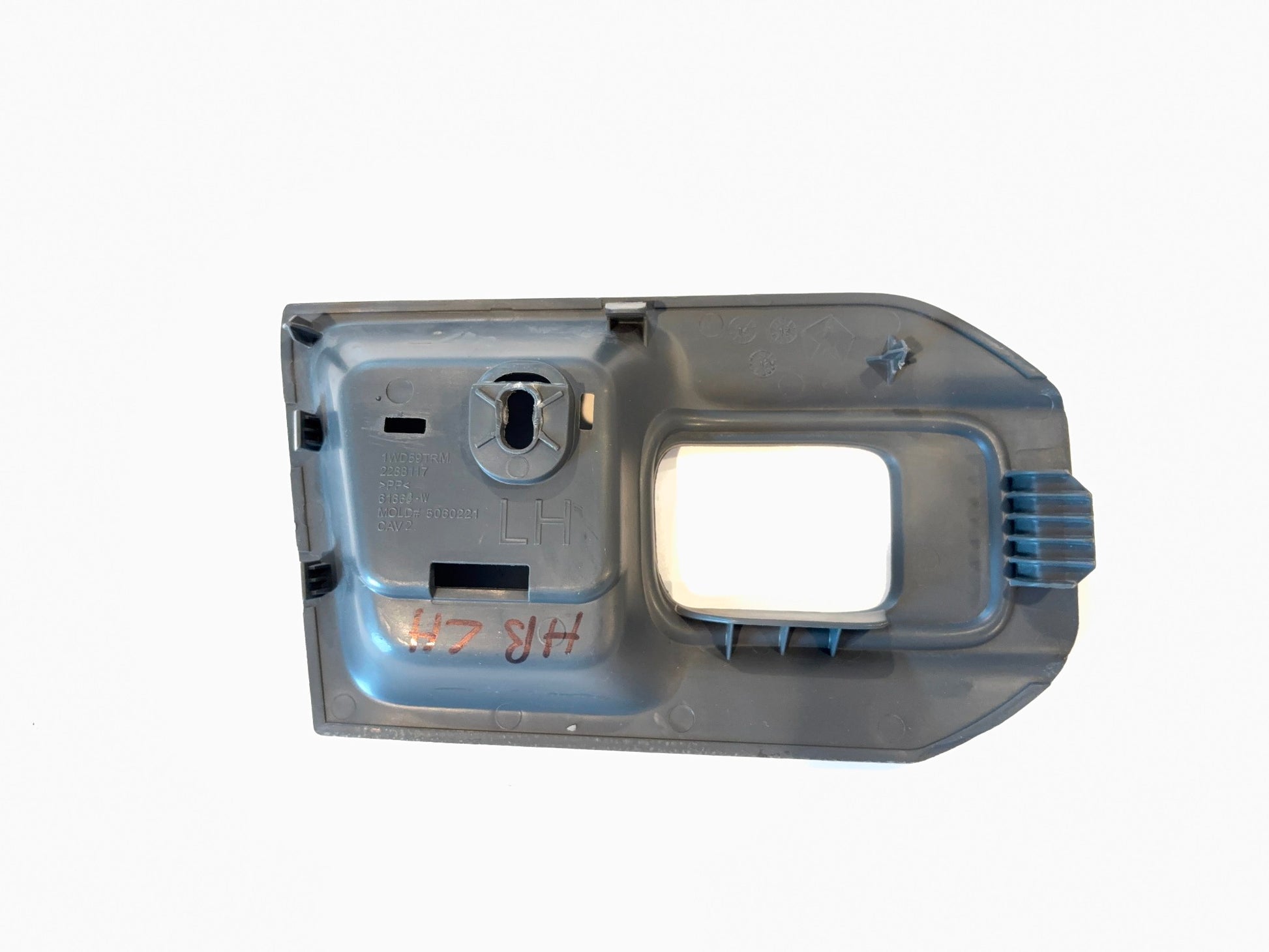 This is a used driver side door handle trim bezel removed from a 2013 Ram 1500. The Mopar part number is 1WD59DX9AB. This will fit either the driver front or driver rear door. This was removed from a truck with the Black/Diesel Gray interior trim color. It is in poor cosmetic but usable condition. It is missing the screw cover panel. This style door handle trim bezel is generally found in SLT Big Horn models - Laramie and Long Horn would have an LED light in the bezel, and some lower trim models would have had a rectangular bezel rather than the sculpted style bezel.
