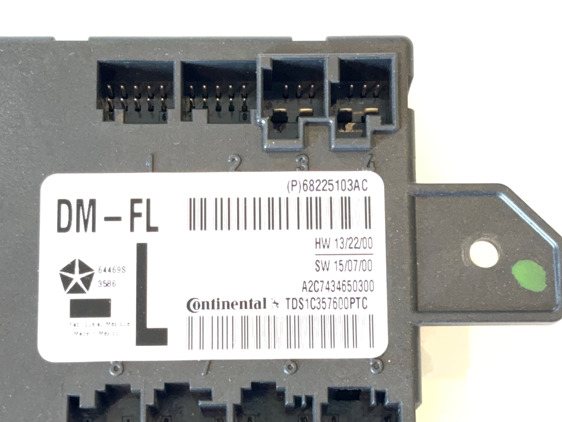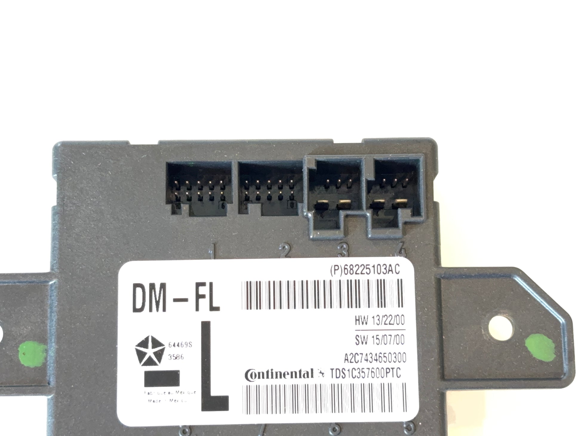 This is a used driver side (left-hand) power folding door module removed from a 2015 Ram 1500 Big Horn. The Mopar part# is 68225103AC. It is in good used condition.