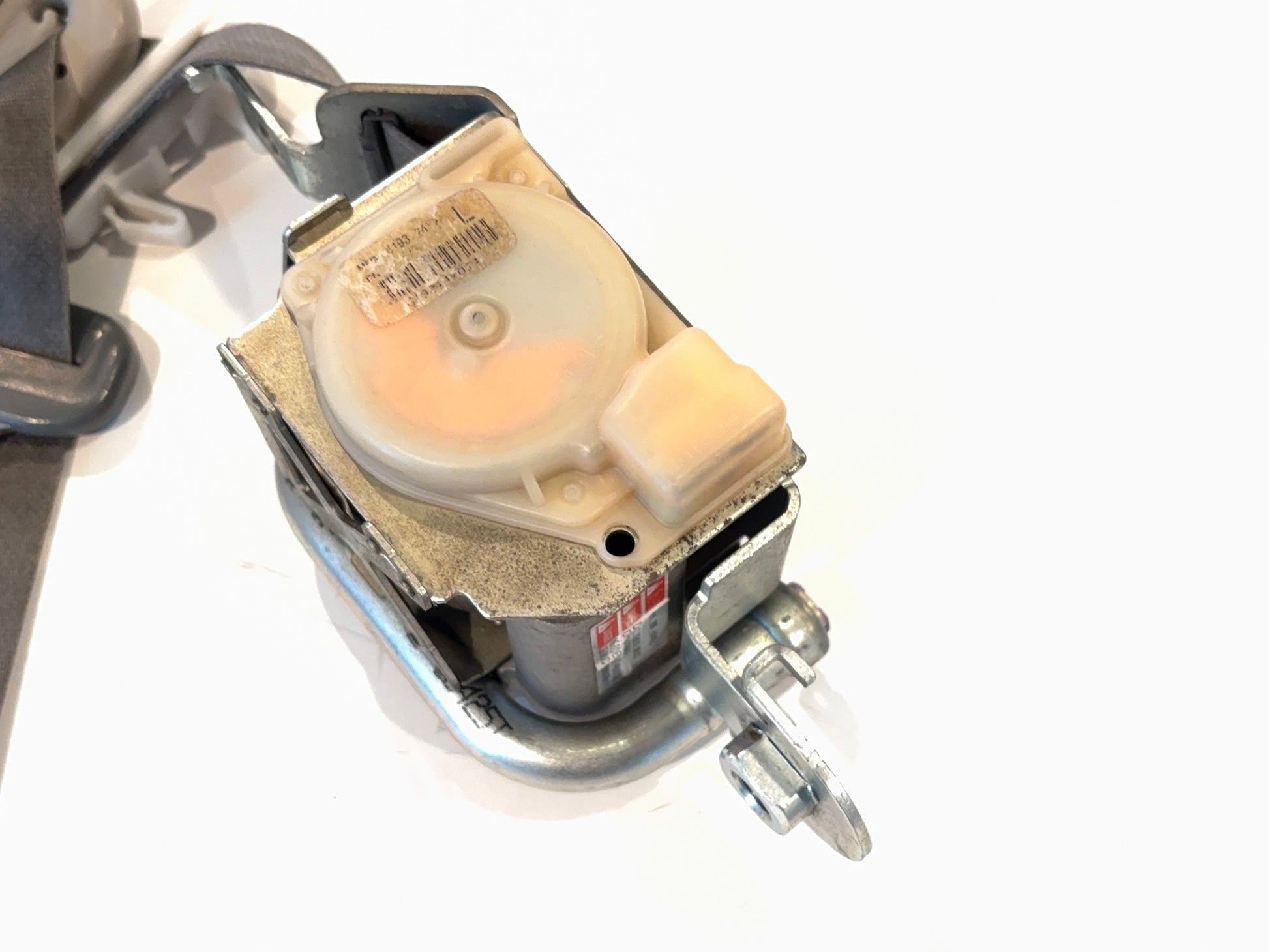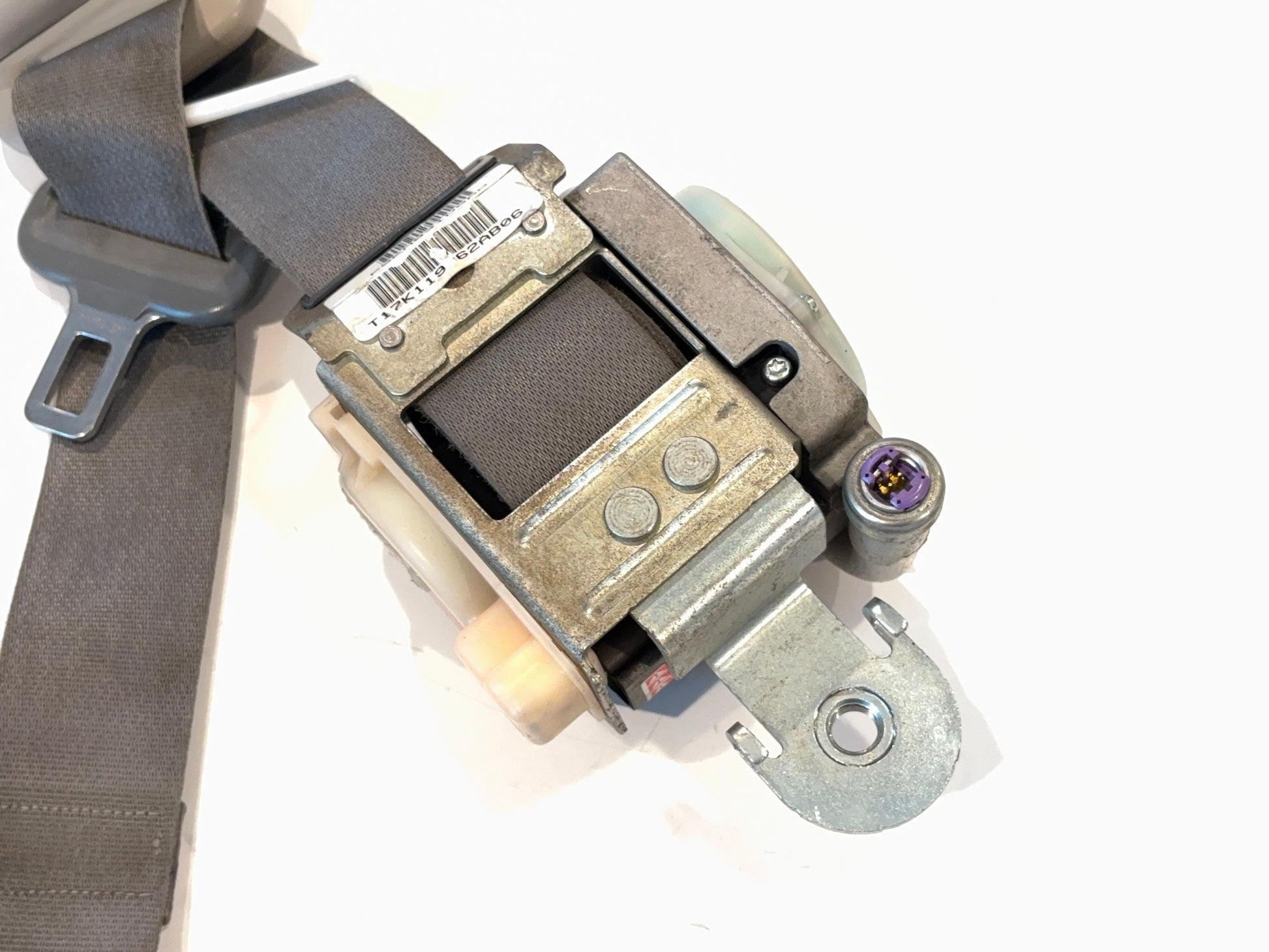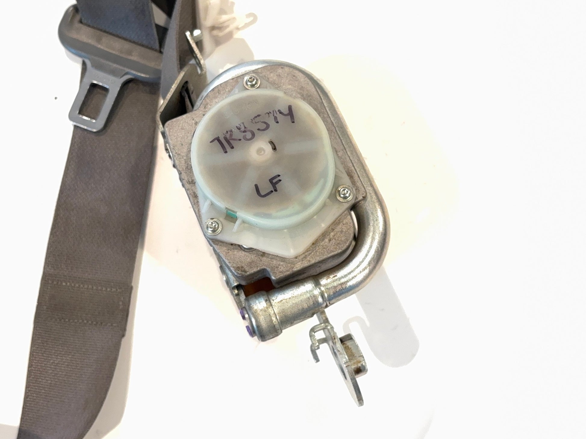This is a front driver side (left-hand) seat belt retractor removed from a 2007 Ram 3500 Mega Cab. The Mopar part number is 5KM831D5AB. This retractor will work for the medium slate interior color, trim color D5. This is in poor cosmetic, but usable condition. The belt is dirty from use. Please check all pictures carefully for the best view of the item's condition.