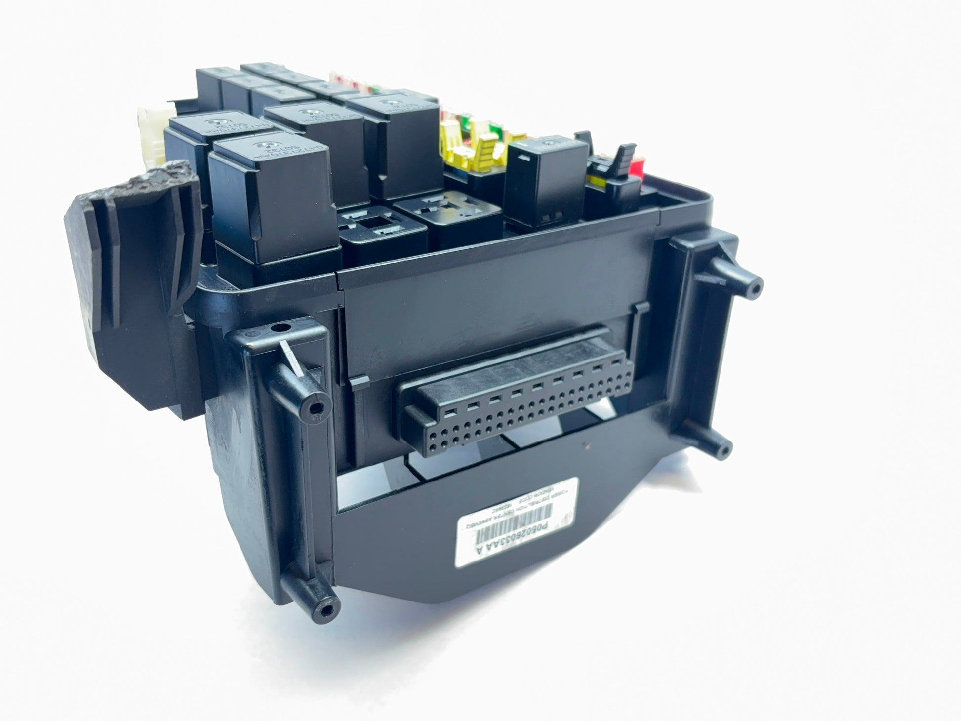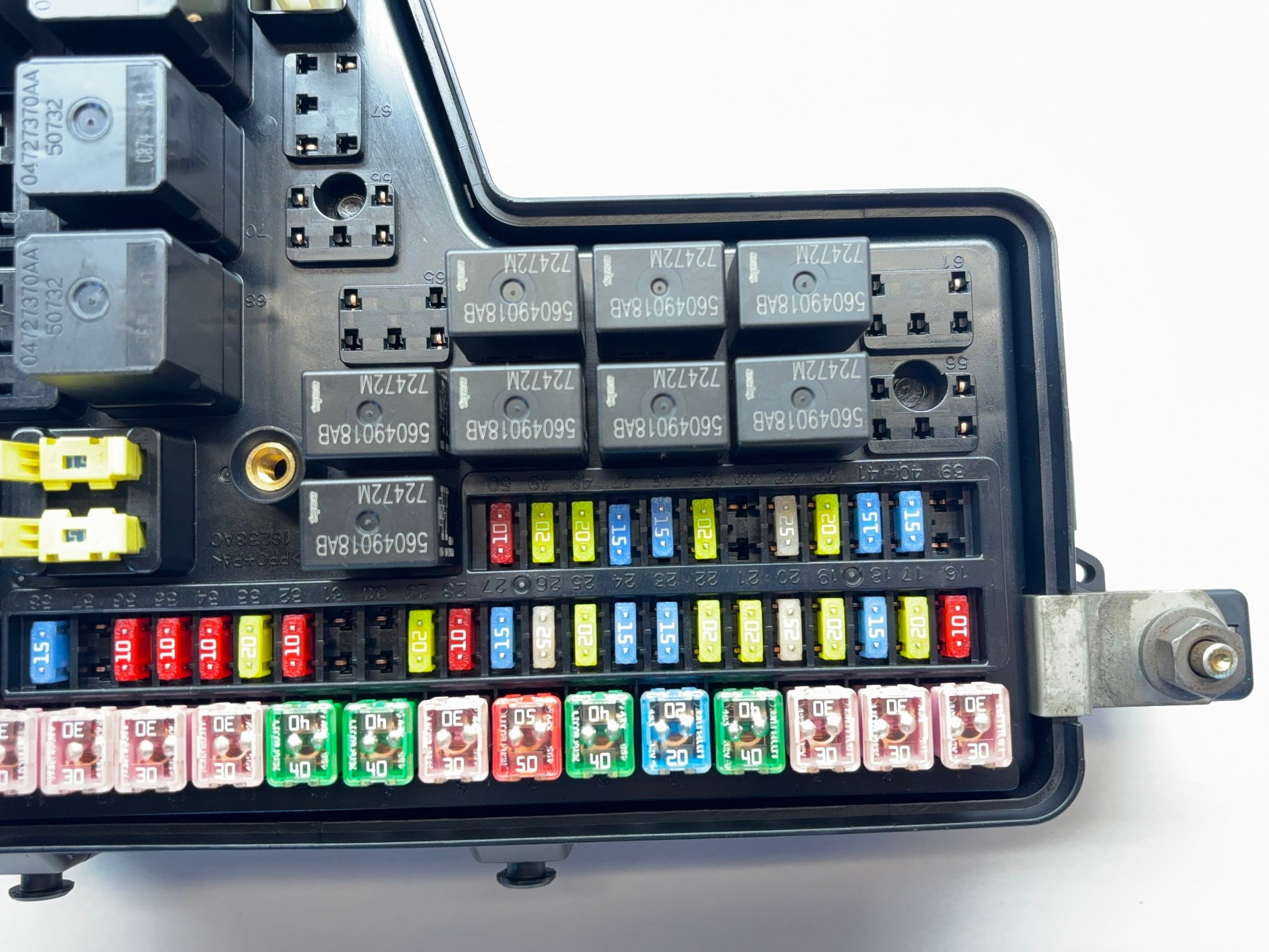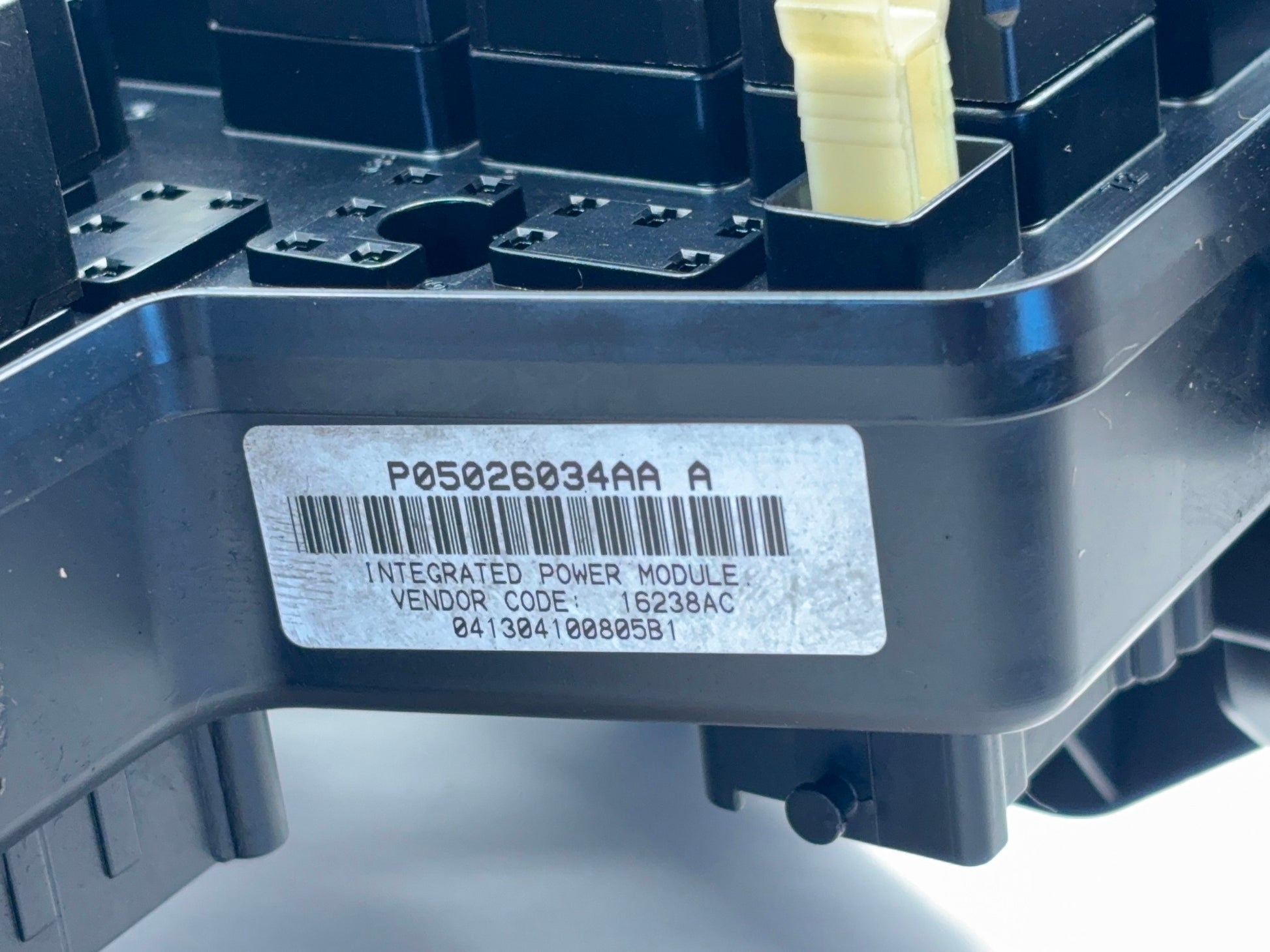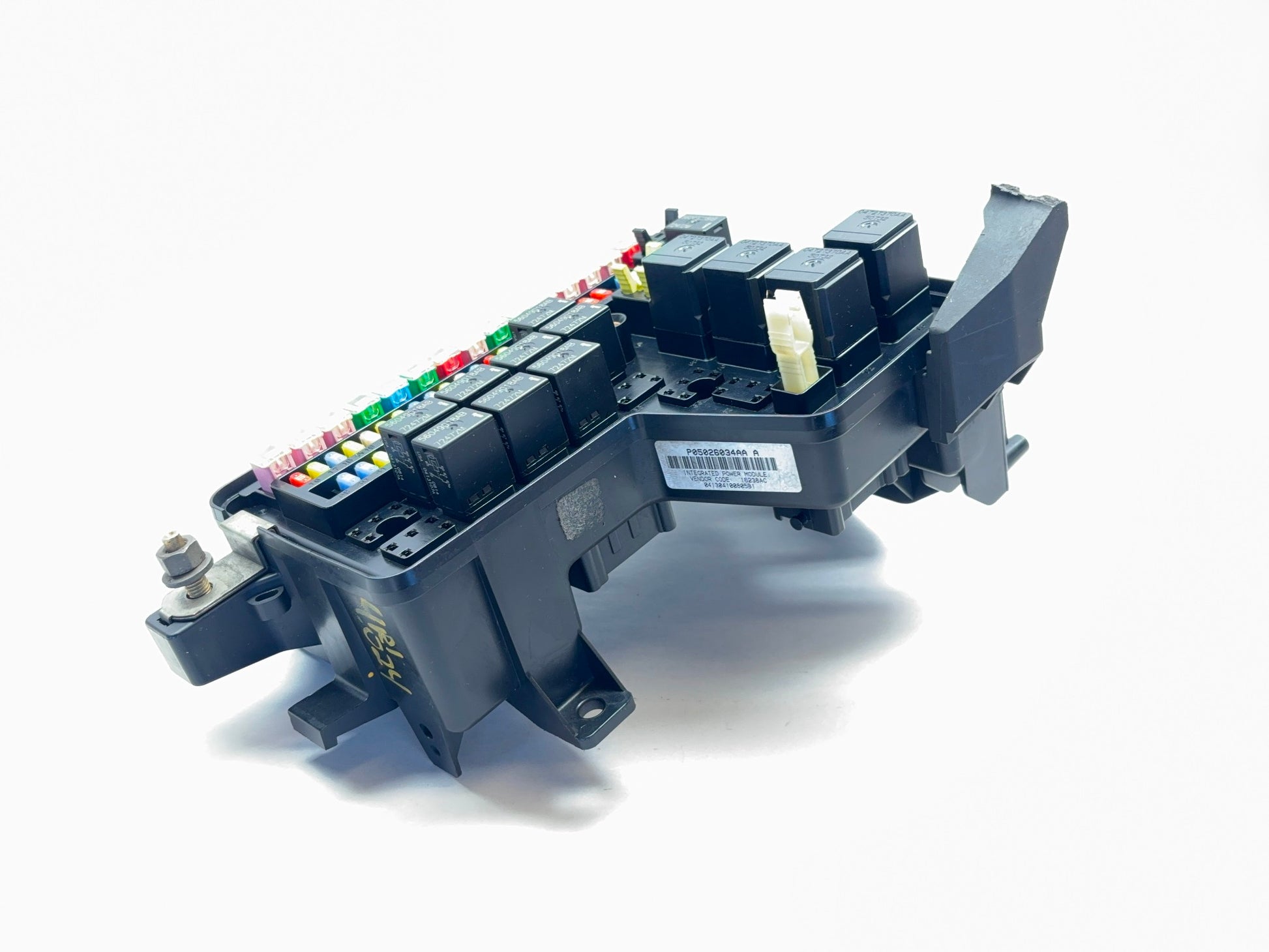 This is a used engine fuse box removed from a 2005 Ram 1500 5.7L Hemi. The Mopar part# shown on the fuse box is 05026034AA, the part number shown in the Mopar catalog is 68005479AA. It has a broken mount and is missing the lid. The body control module is not included.