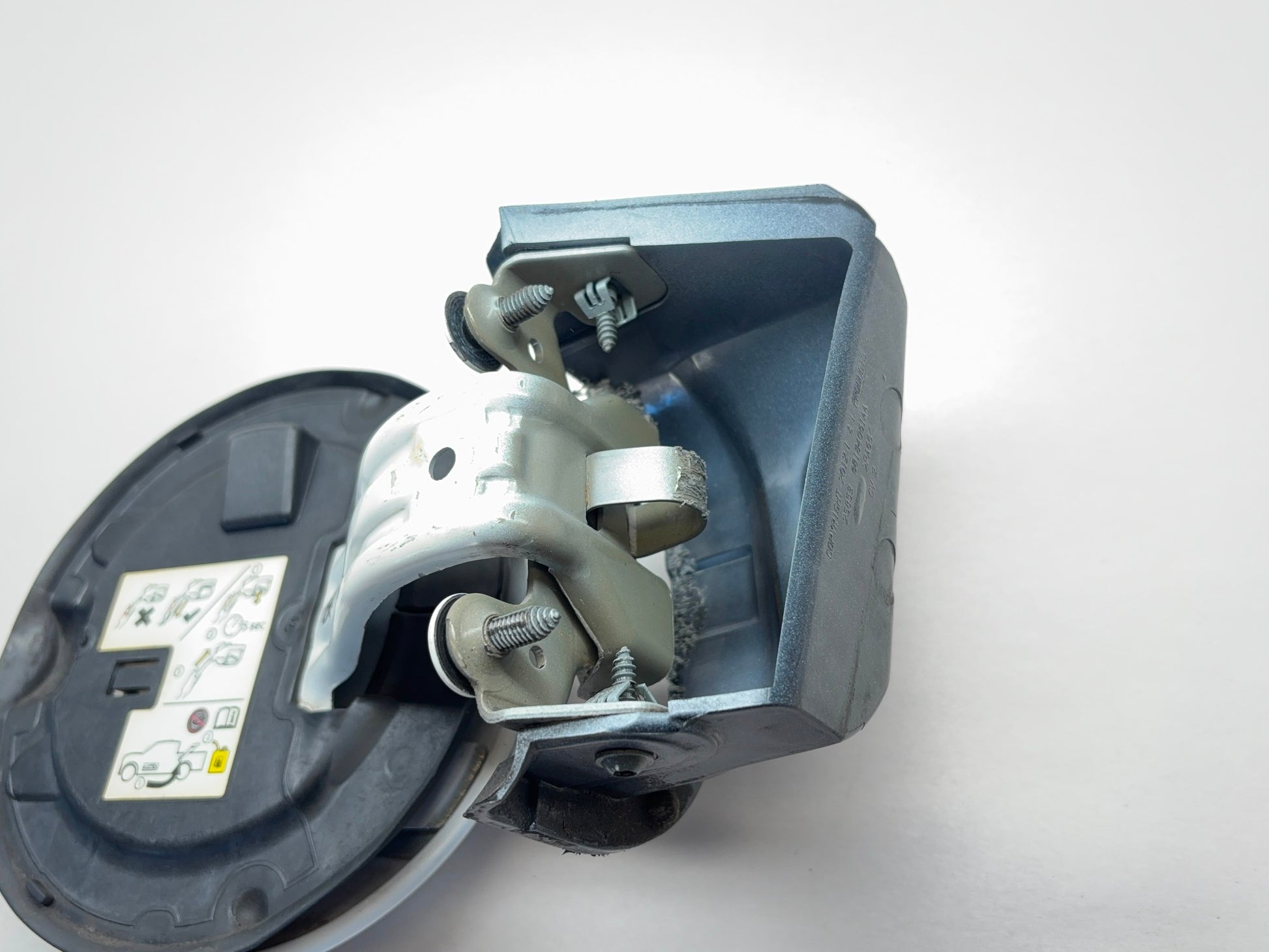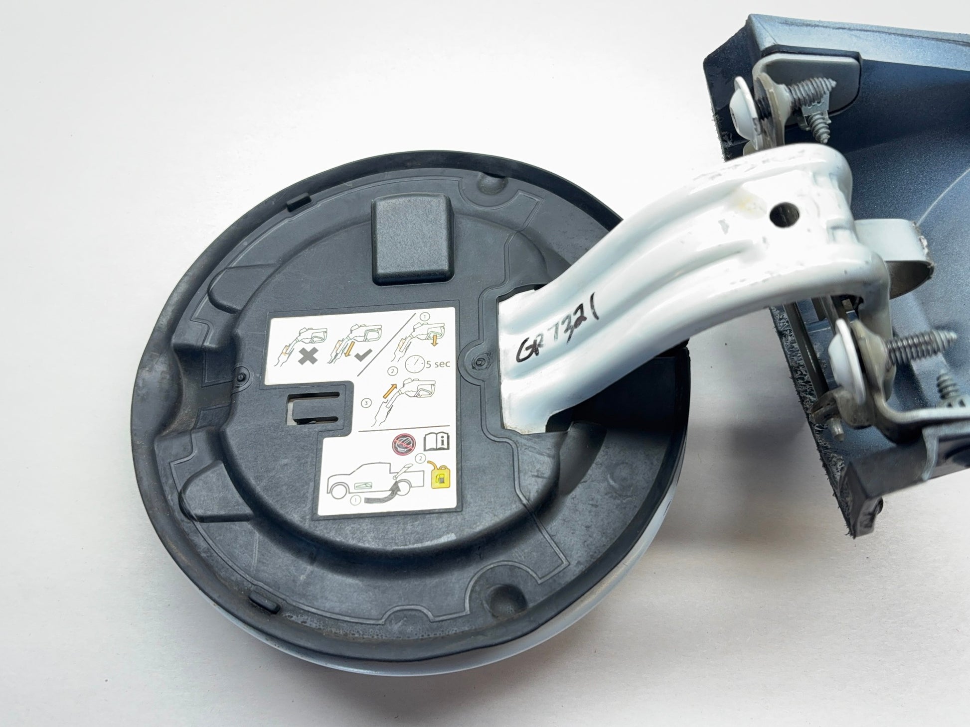 This is a used fuel door removed from a 2015 Ram 2500 with a capless fuel door. The Mopar part number is 68171514AA. This was removed from a truck with Bright White paint, paint code PW7. This fuel door will show minor scratches in the paint.
