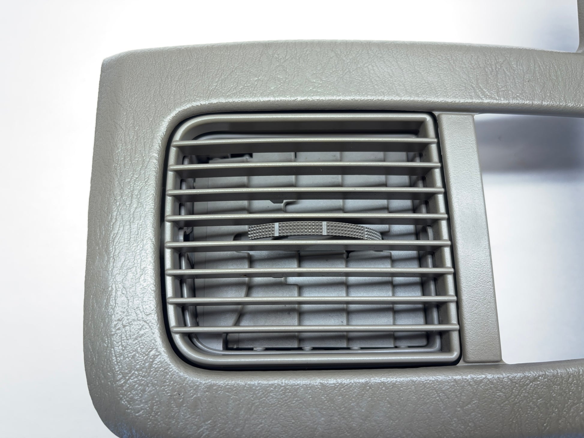 This is a headlight switch bezel with vent, removed from a 2005 Dodge Ram 2500. This panel is for the taupe interior color, the trim code on the truck was M9L5. The Mopar part number is 5GY91WL5AA. It is mounted on the left side of the dash.