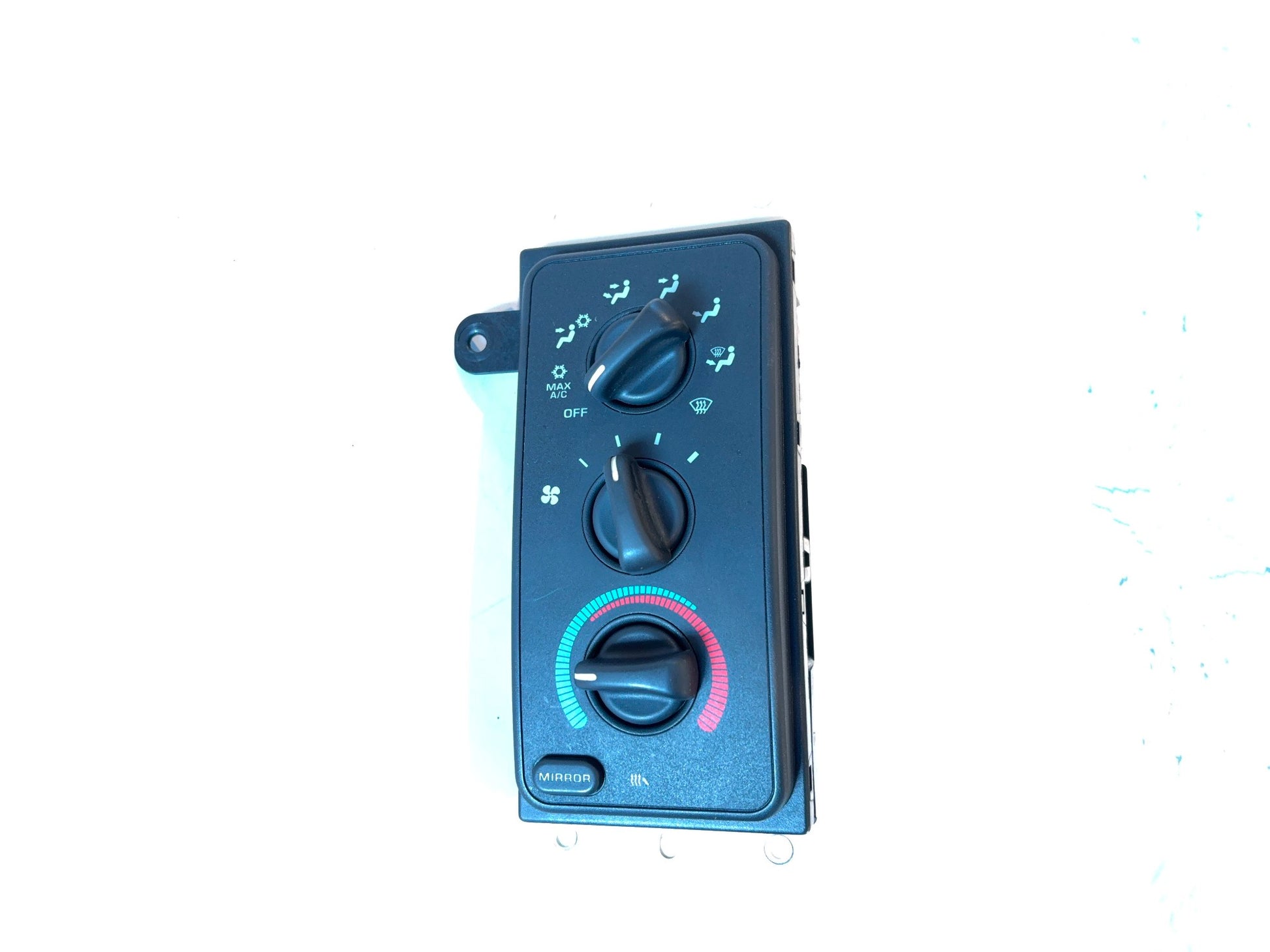 This is a used heater and a/c control unit removed from a 2001 Ram 1500. The Mopar part# is 55056700AD. This item is in good used condition. There are no broken or cracked areas, and the knobs move as they should. It will show a lot of dust and dirt from use, and the mirror button is faded.