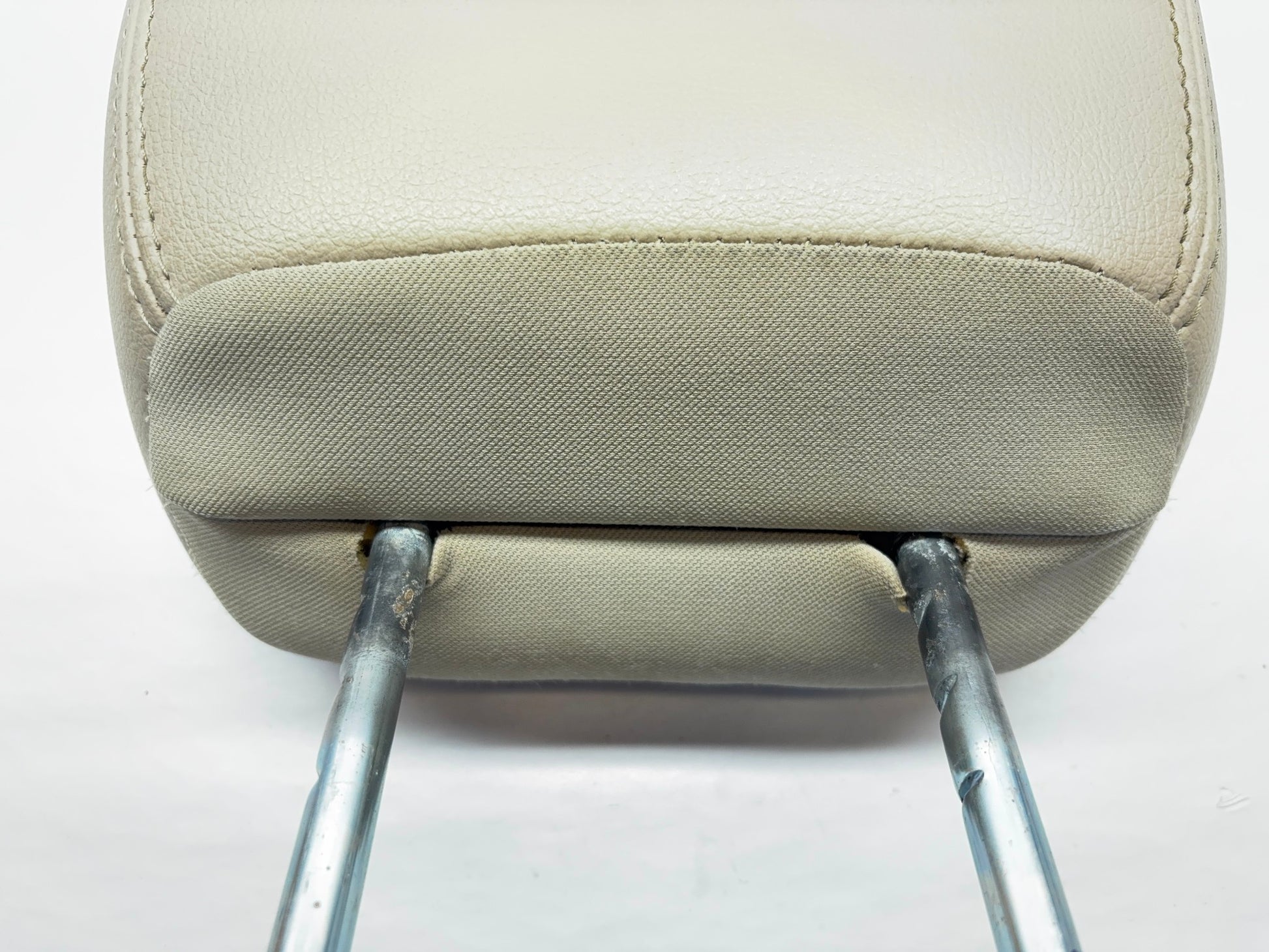 This is a leather front seat headrest removed from a 2014 Ram 1500 Laramie. This headrest matches trucks with the Canyon Brown/Light Frost Beige interior color. The Mopar part number is 5NQ17HL1AA. It is in good used condition. There are no rips or tears in the leather. This headrest fits either the left or right rear seat. The measurement from outside to outside of the 2 rods is approximately 5" inches. Please check all pictures carefully for the best view of the item's condition.