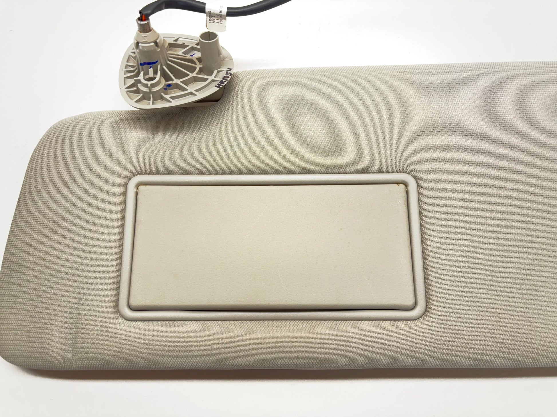 This is a used cloth sun visor, lighted with mirror, removed from a 2017 Ram 1500 Big Horn. The Mopar part number is 1VF25BD1AD. It is in good used condition. It does have a crease on the outside edge. Please check all pictures carefully for the best view of the item's condition.