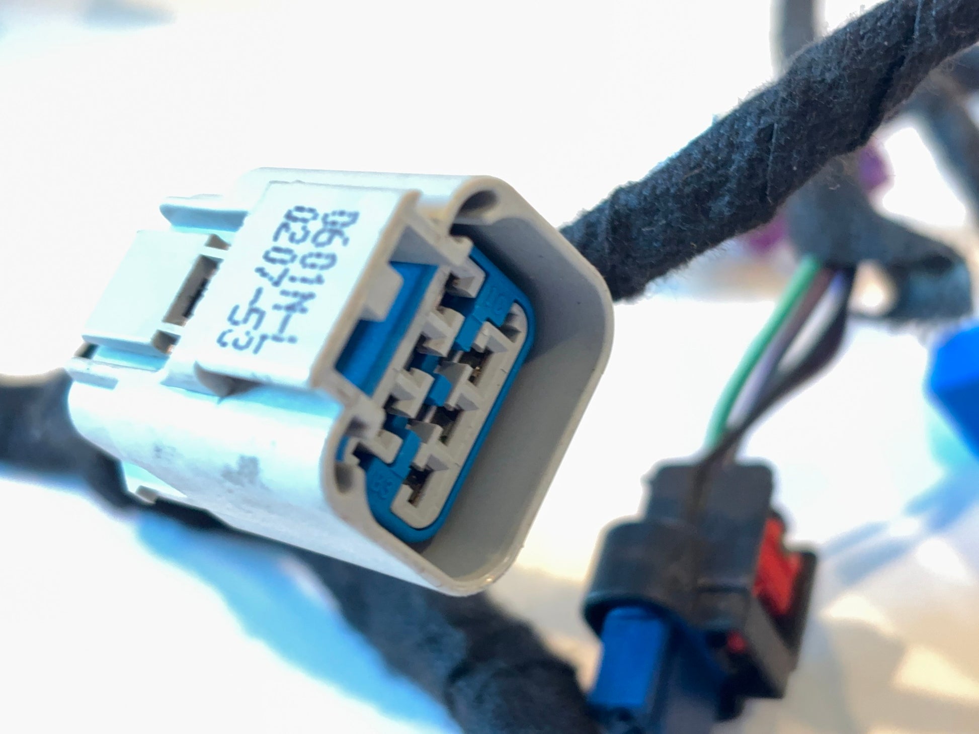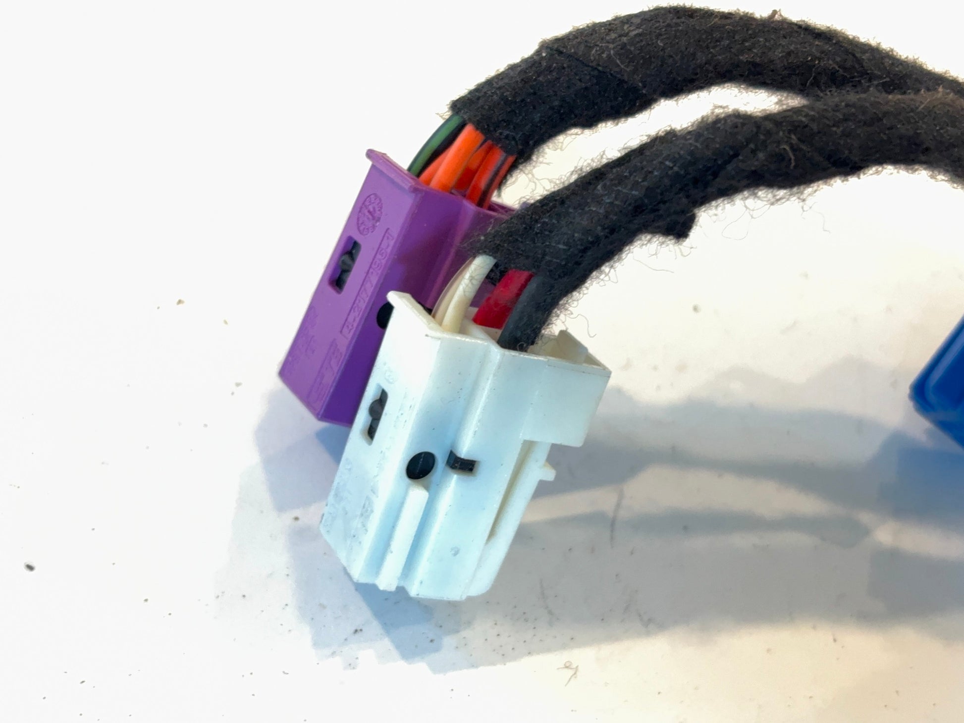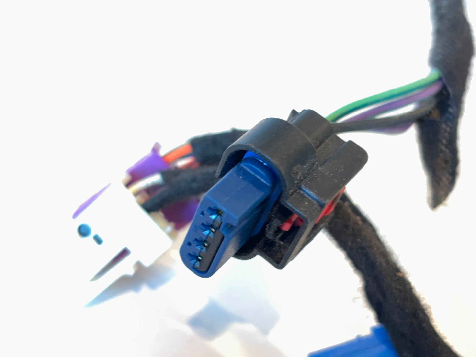 This is a used passenger side front (right-hand) door wiring harness removed from a 2017 Ram 1500 Laramie Crew Cab. The Mopar part number is 68263817AD. This wiring harness is in good condition, it will show minor amounts of dust but there are no spliced, stripped or cut wires.