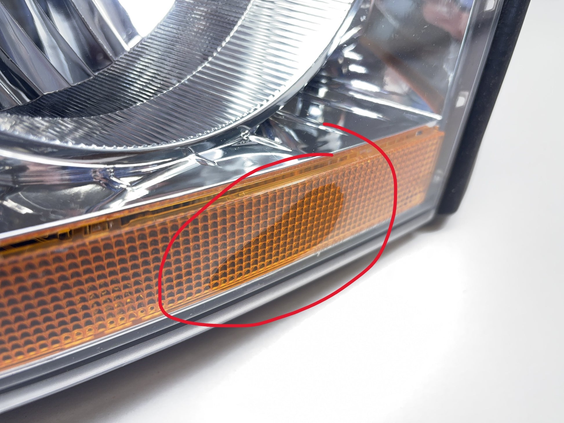 This is a used passenger side headlight removed from a 2006 Ram 1500. The Mopar part number is 55077794AD. This is a used OEM headlight, not an aftermarket. This is in better than average used condition. It does have an imperfection on the front, it is not moisture or haziness, I am not sure what caused it. It is still a much better than average headlight for its age.