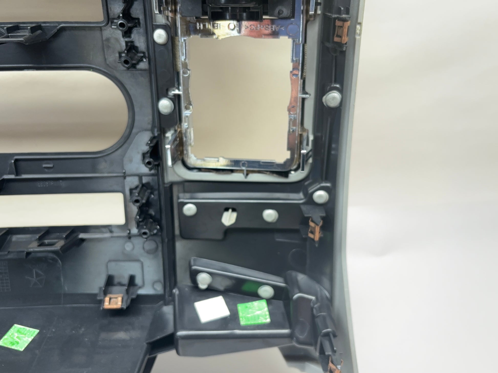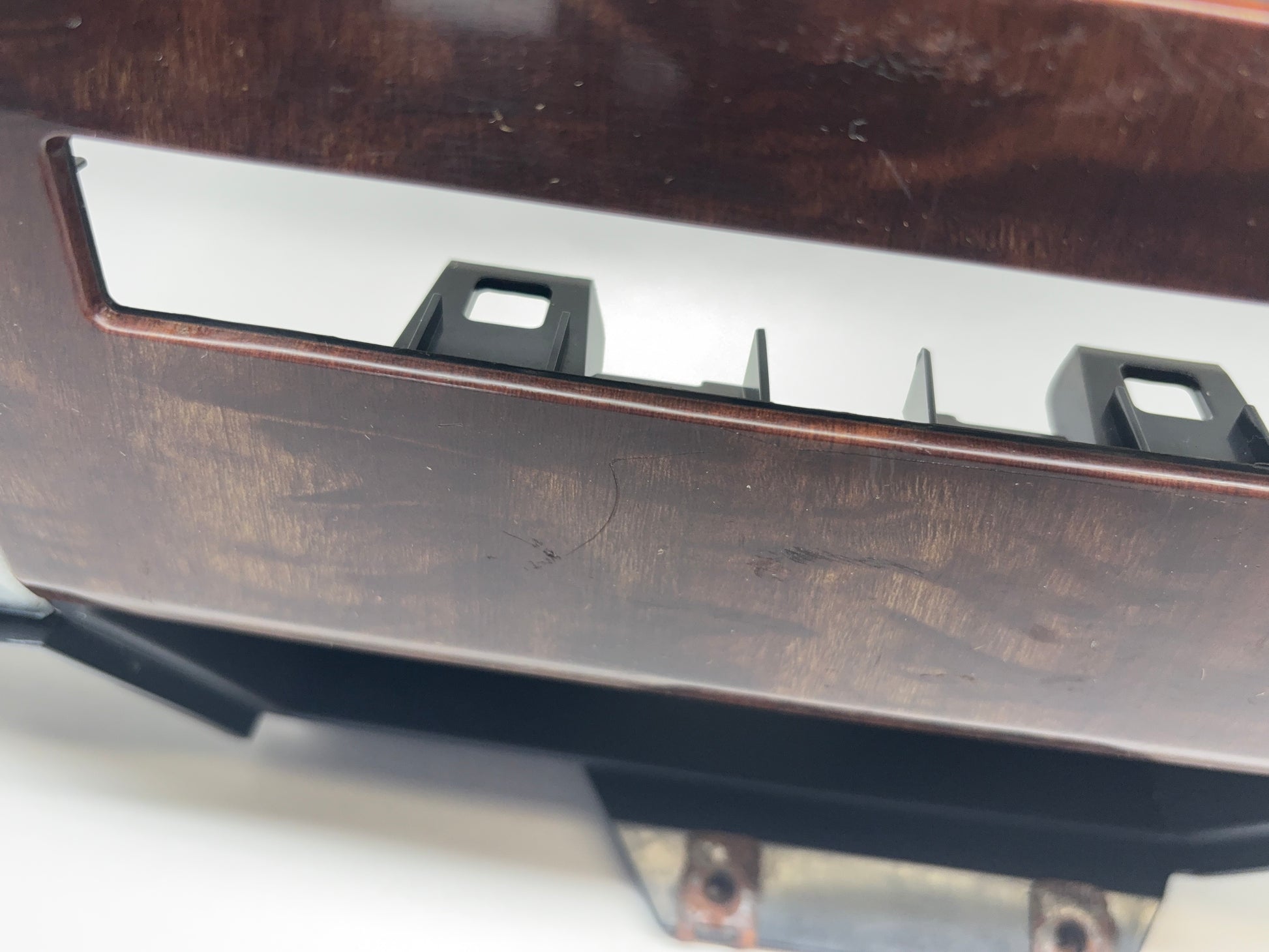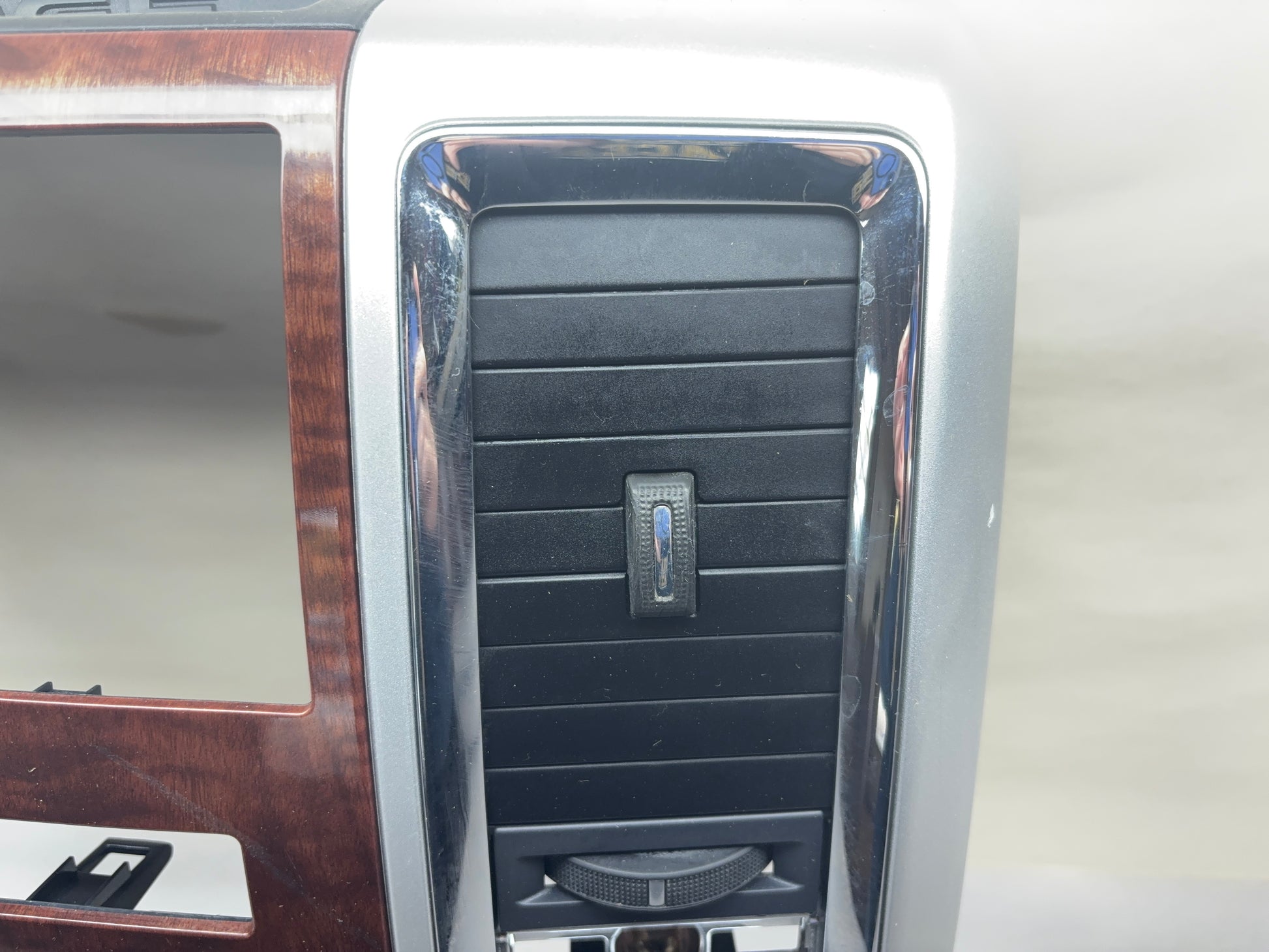 This is a used radio bezel removed from a 2011 Ram 1500 Laramie. This bezel is in fair used condition, the driver side vent has one slat that is broken and the inverter plug bezel is missing. There is some marking on the lower passenger side and some light scuffs and scratches on the exterior. All mounting tabs are intact. The Mopar part number is 1EB062AAAB.