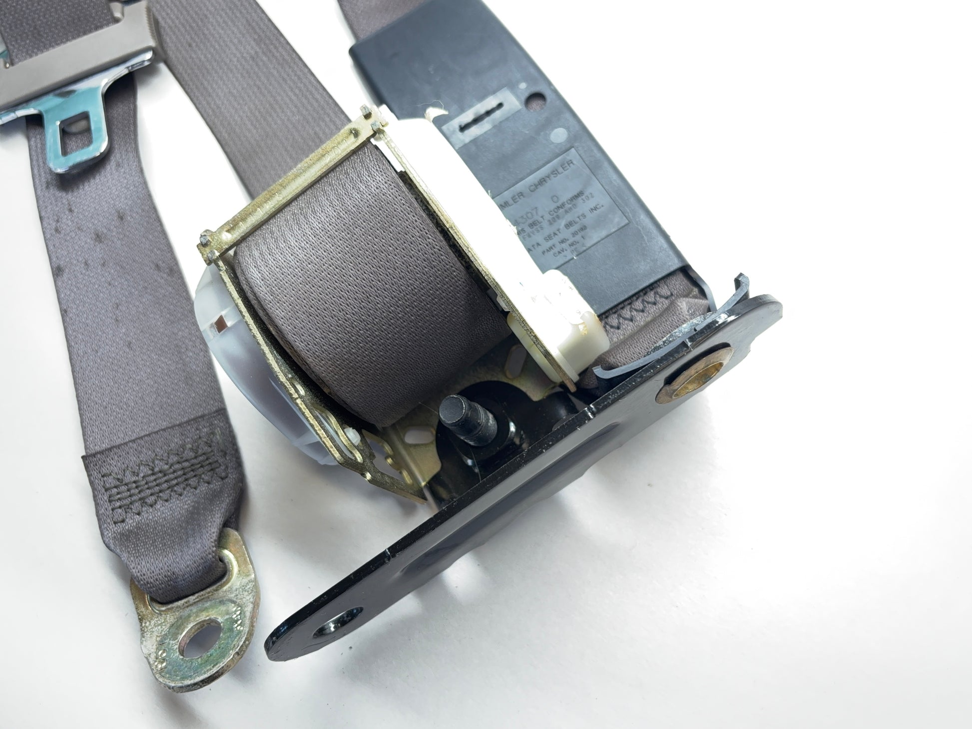 This is a used rear center seat belt retractor removed from a 2005 Ram 2500 with the dark slate interior. The Mopar part number is 5GU501L8AG. This will match trucks with the taupe interior color, trim code L5. This is in fair used condition, the belt is spotted and grimy. Please check all pictures carefully for the best view of the item's condition.