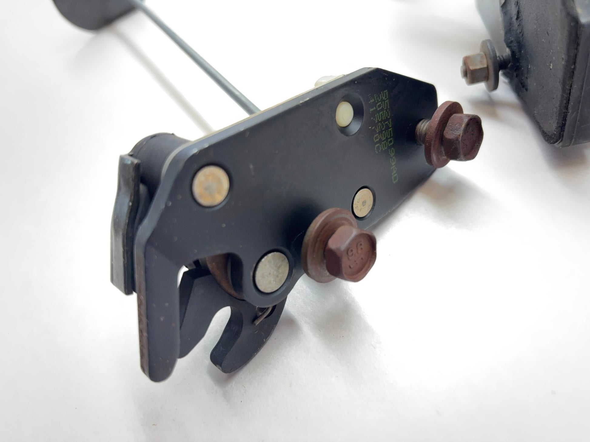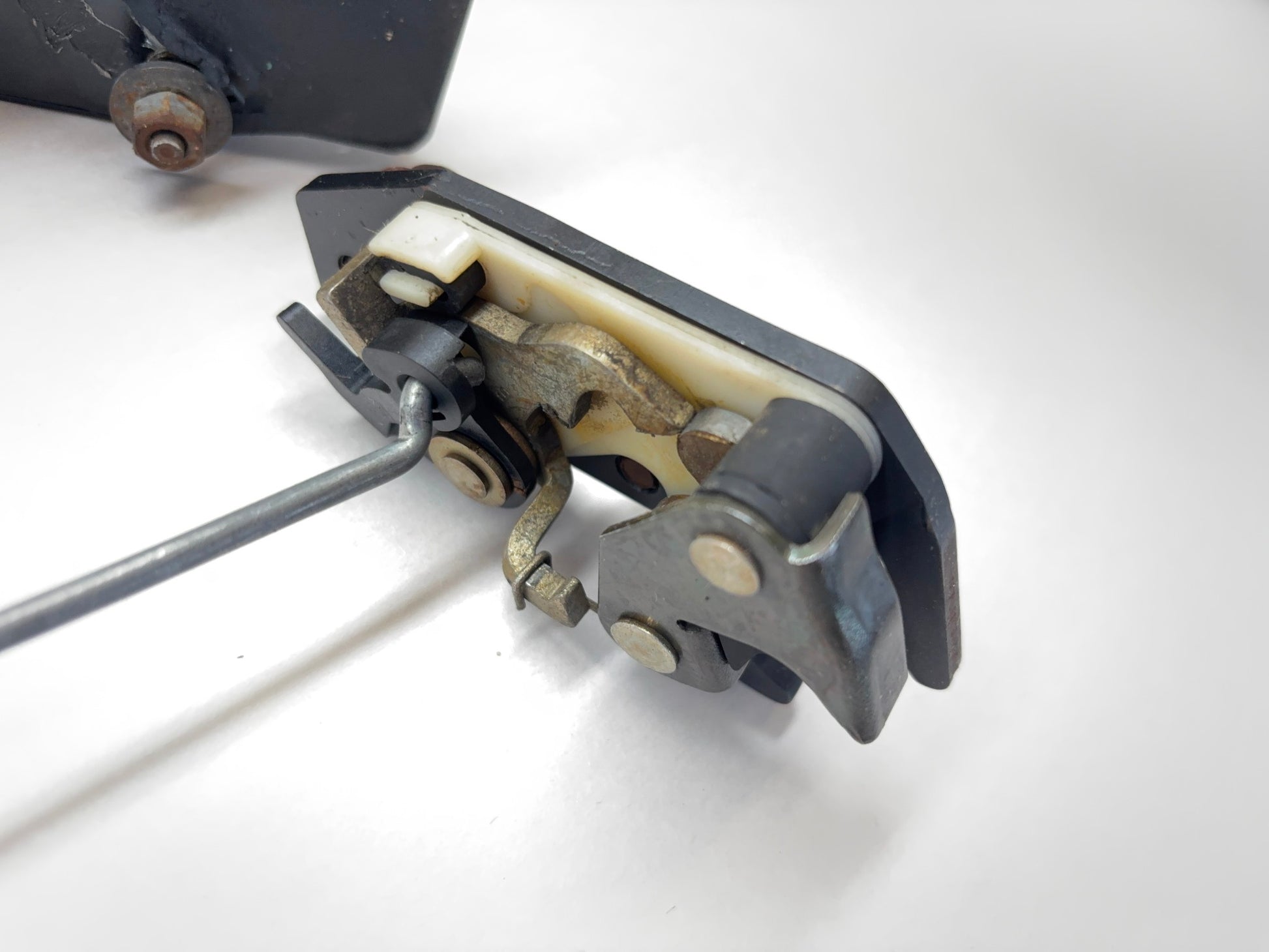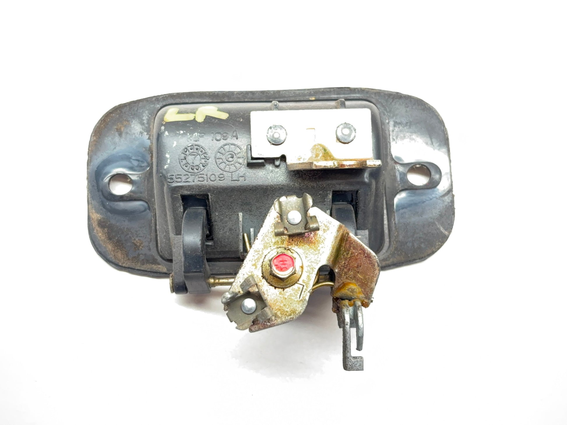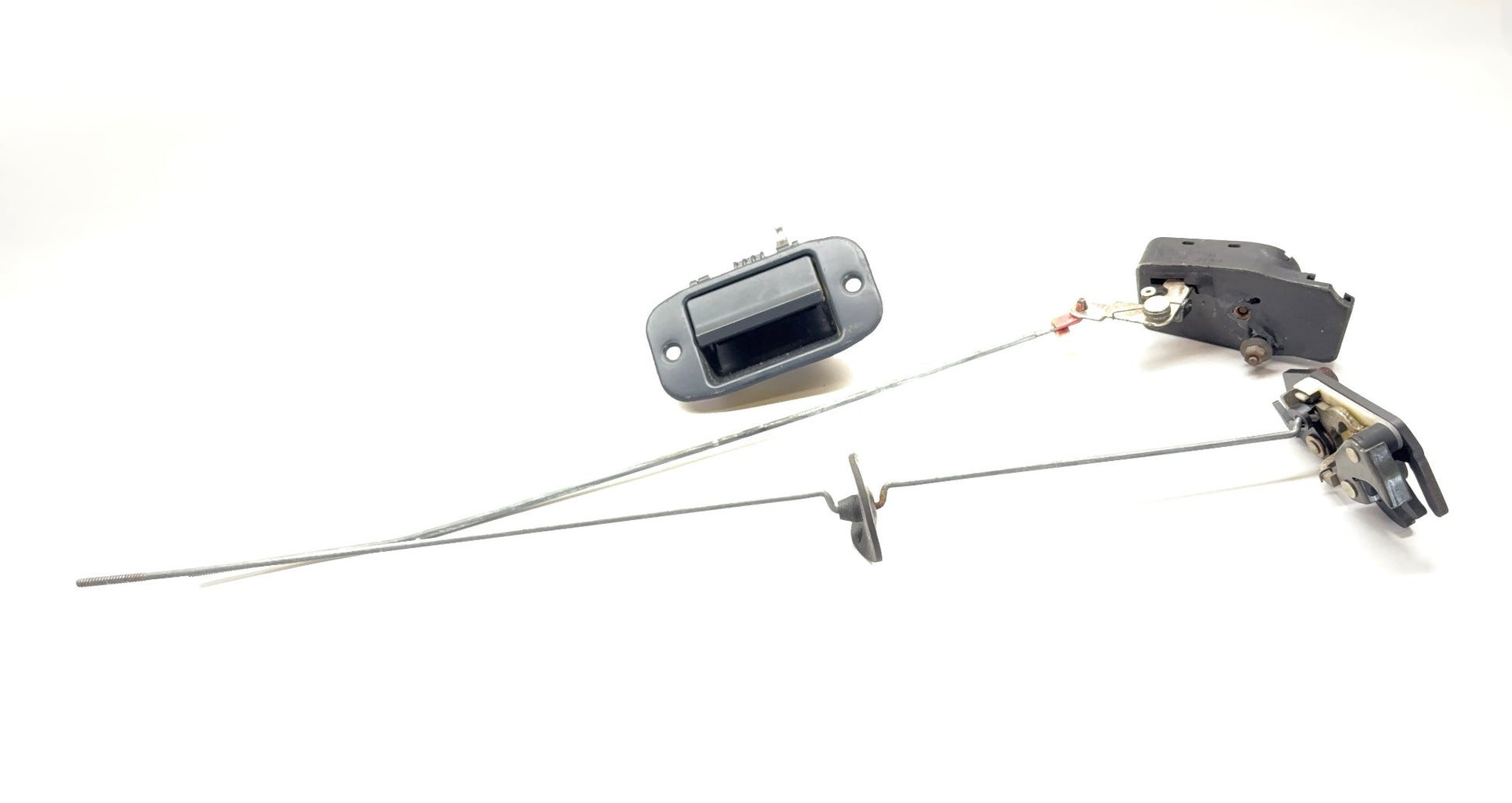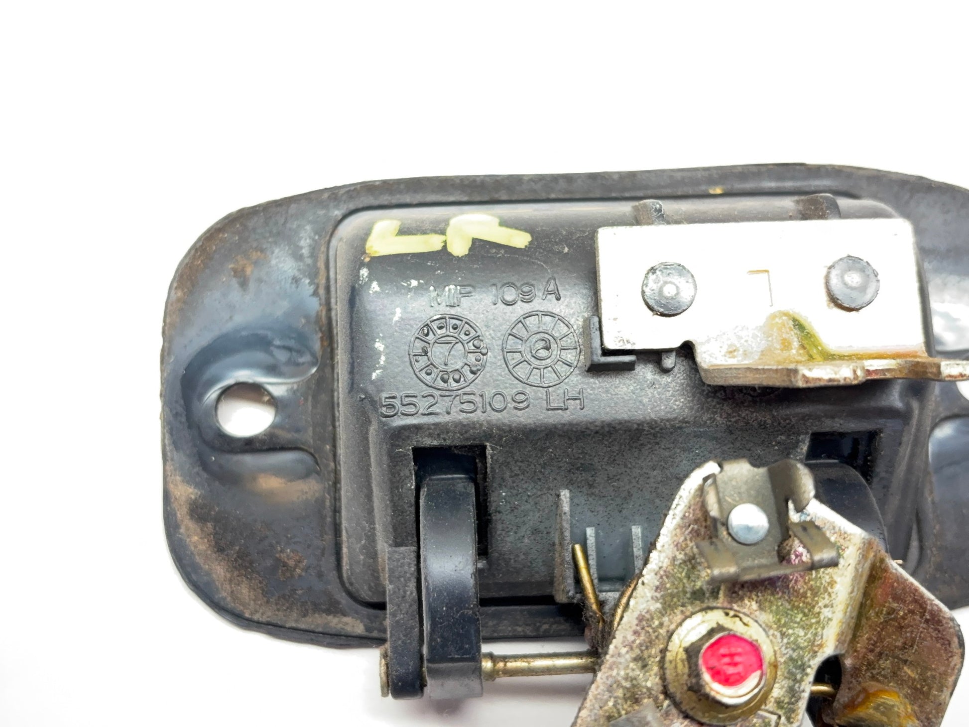 This is used door latch and handle hardware for the driver side (left-hand) rear door, removed from a 1999 Ram 1500 Quad Cab. This includes the upper and lower latches, rods and door handle. The Mopar part numbers are 55275099AD, 55275101 & 55275109. This part will show some surface rust but is in usable condition.