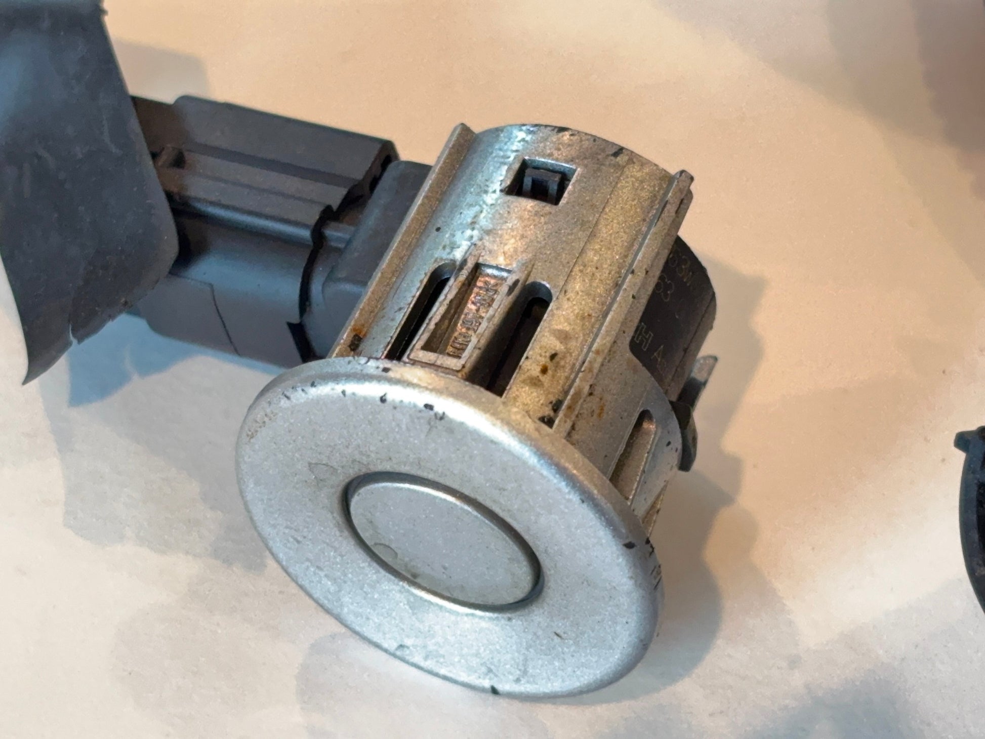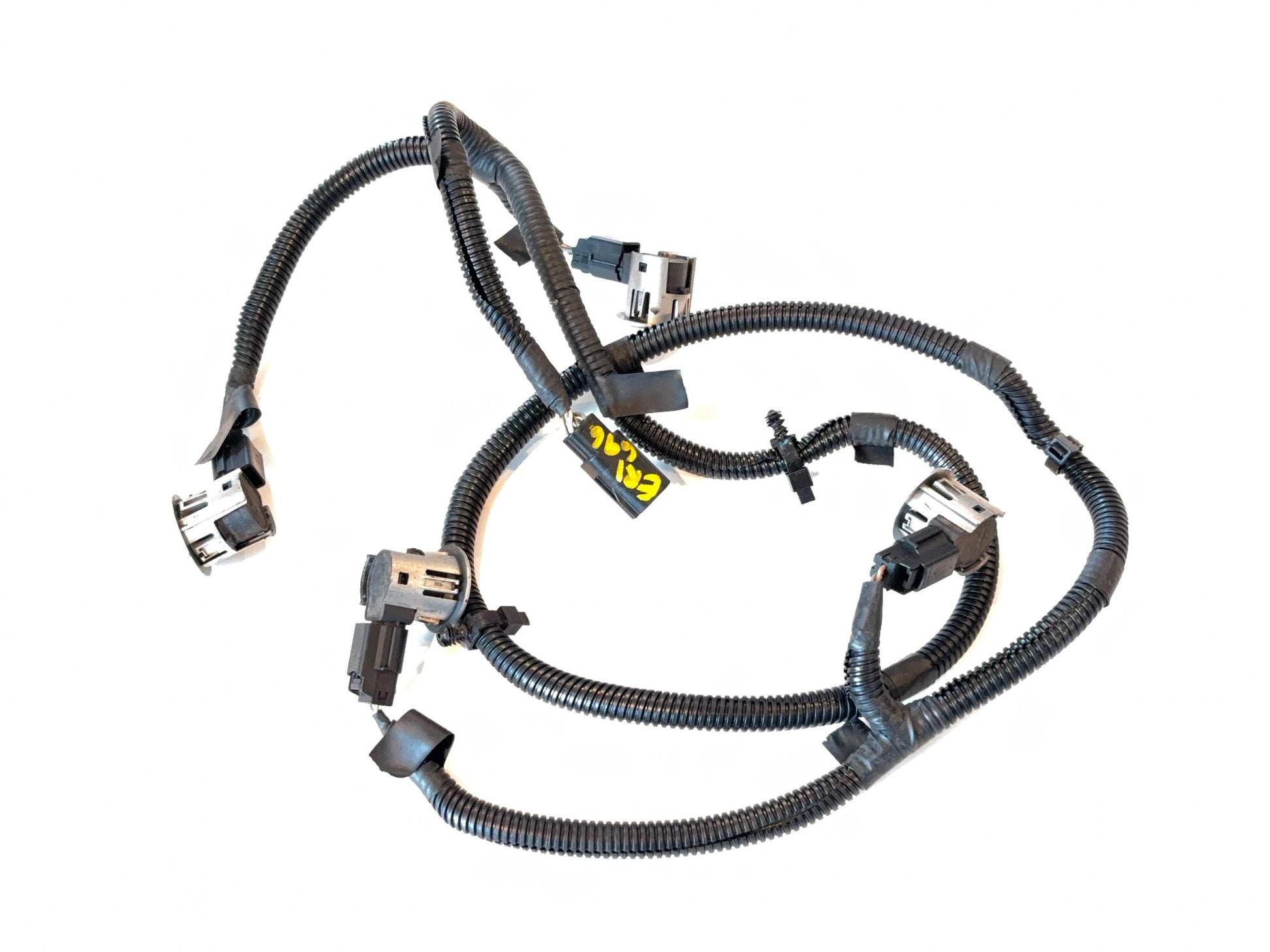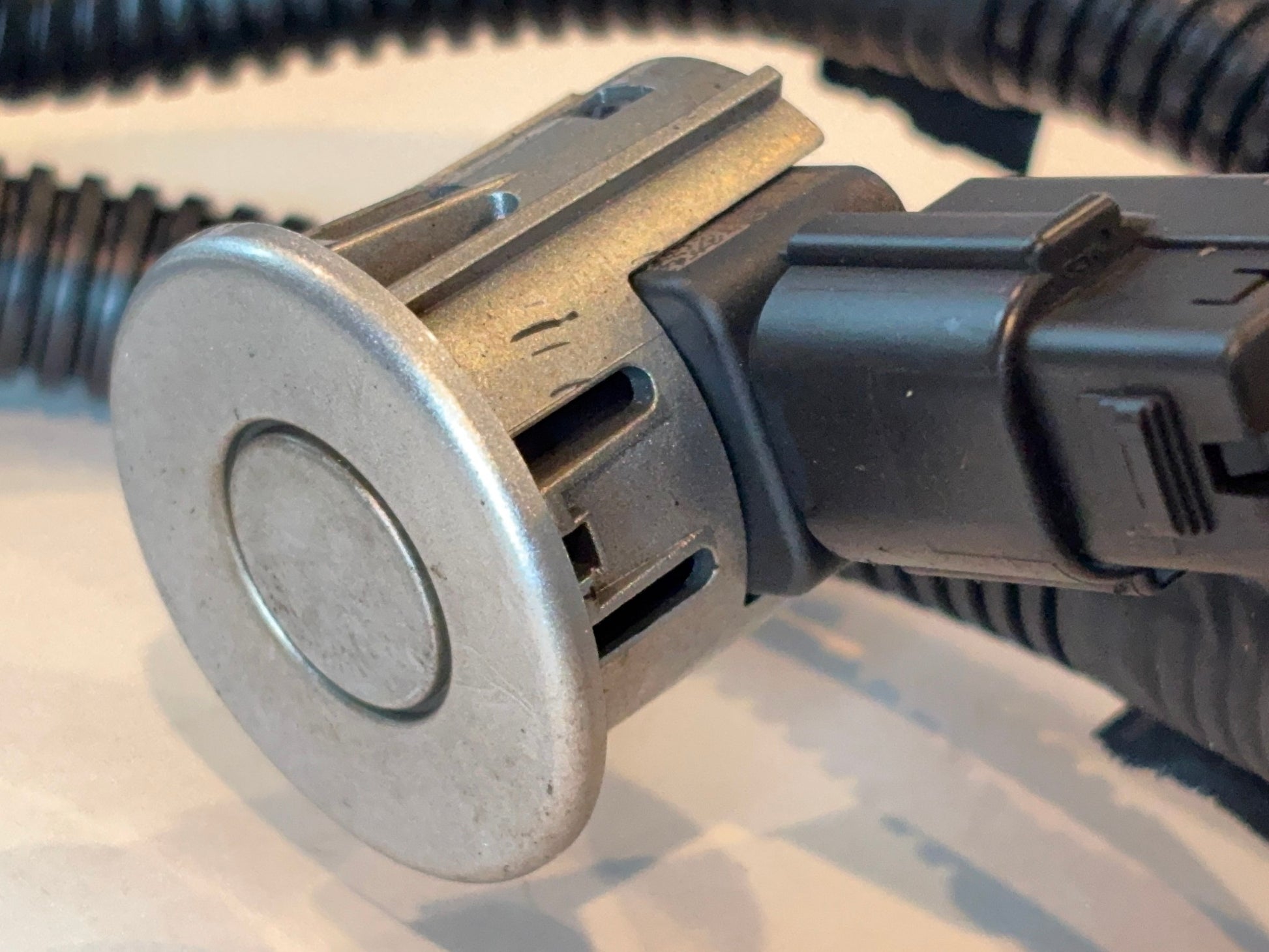 This is a rear park assist wiring harness and sensors removed from a 2014 Ram 1500. The sensors and bezels are in fair used condition, some will show very noticeable scuffing. The harness is dirty from use. These are OEM parts, not aftermarket replacements.