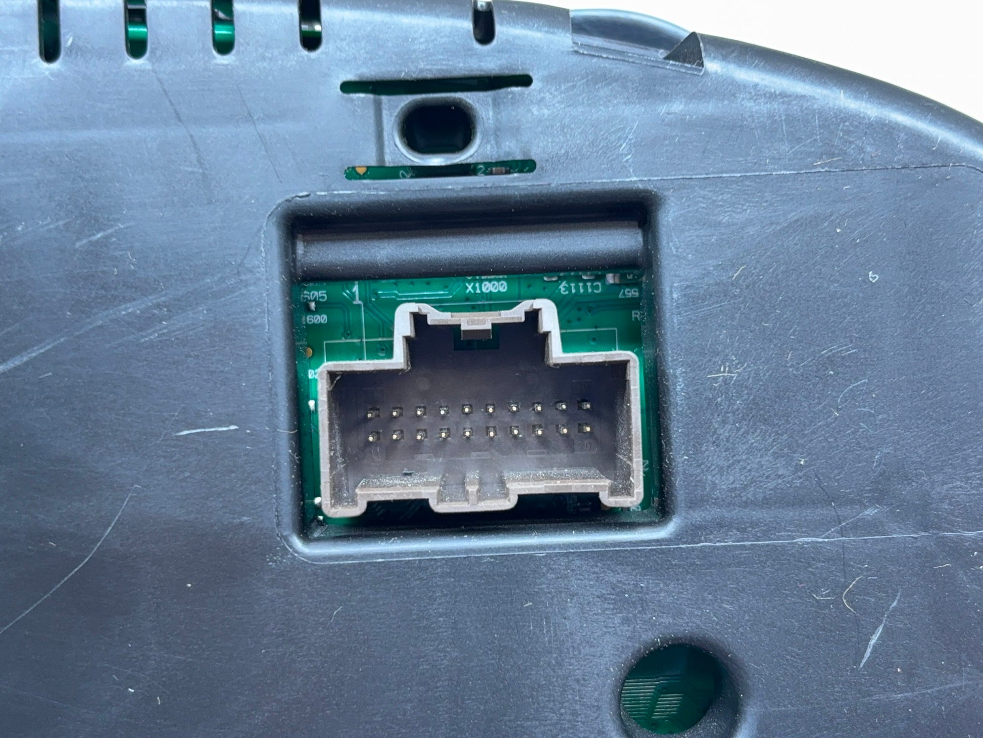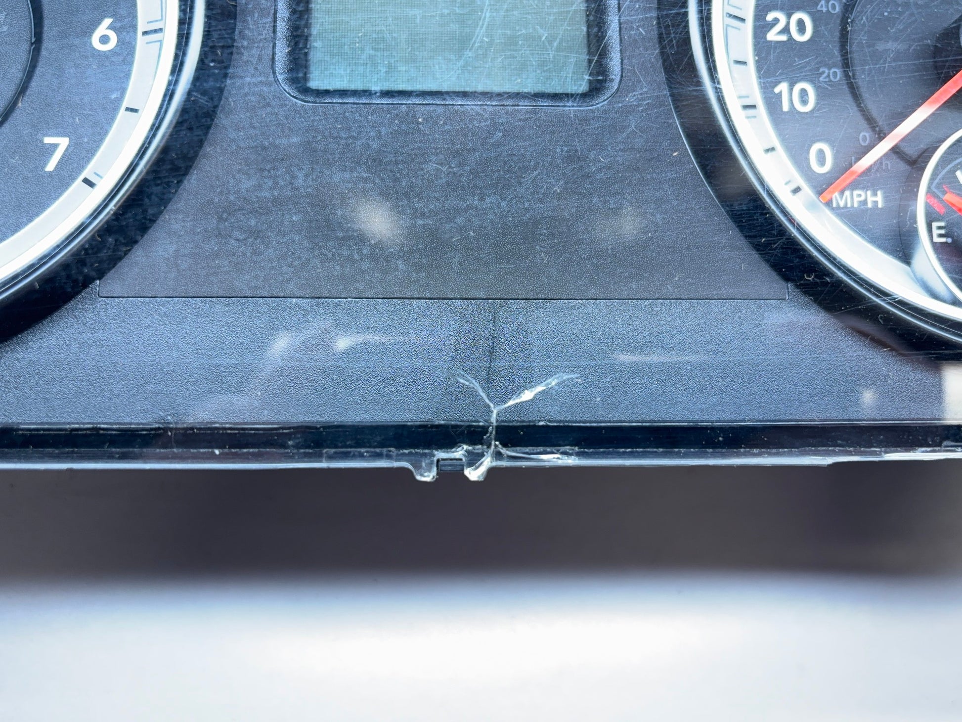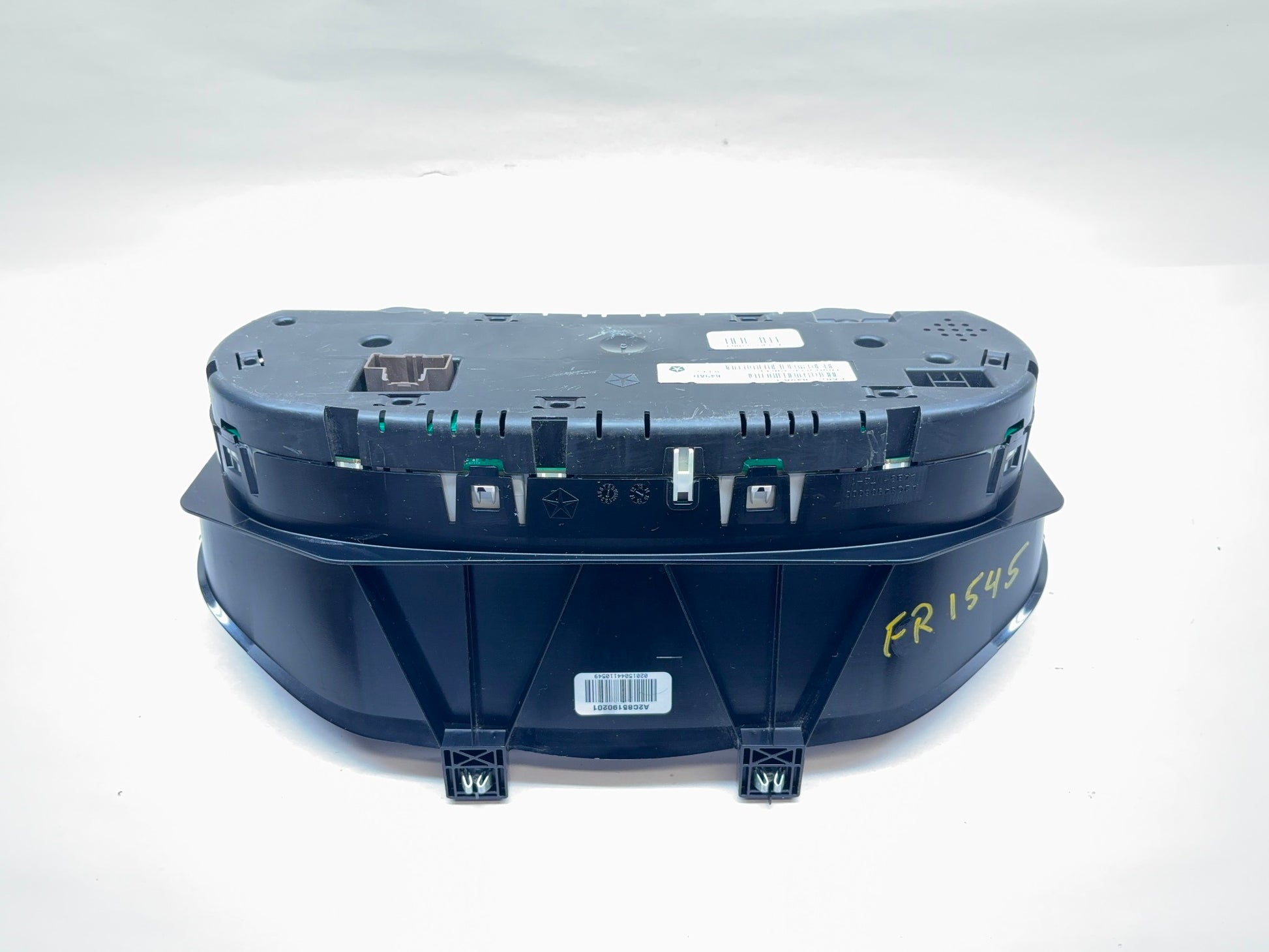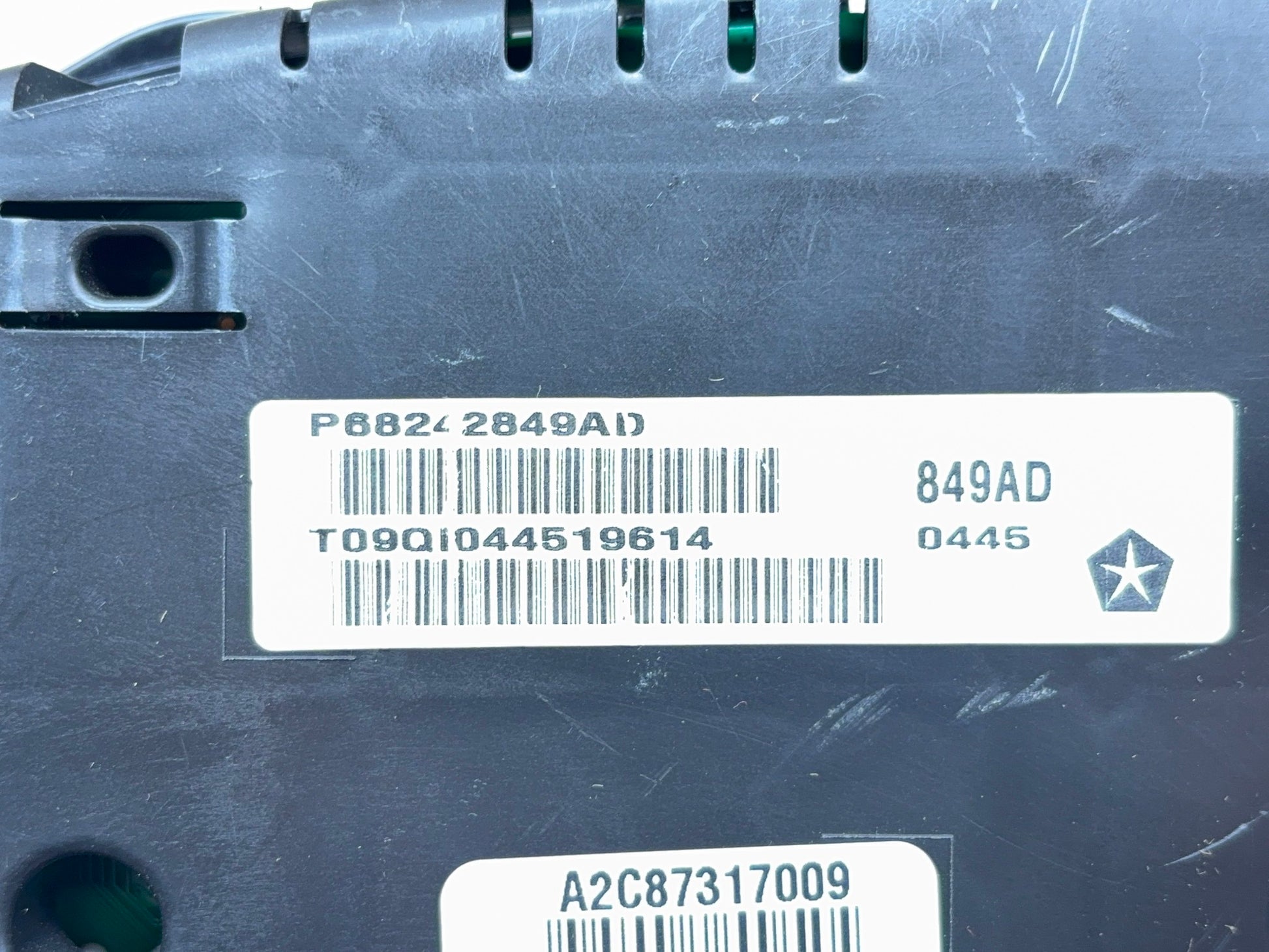This is a used speedometer/instrument cluster removed from a 2015 Ram 1500 SLT with a 5.7L gasoline engine. This is the standard cluster with the 3.5" display. The Mopar part number is 68242849AD. This part is in poor cosmetic condition but good working condition. There is a noticeable crack on the lower edge of the lens.