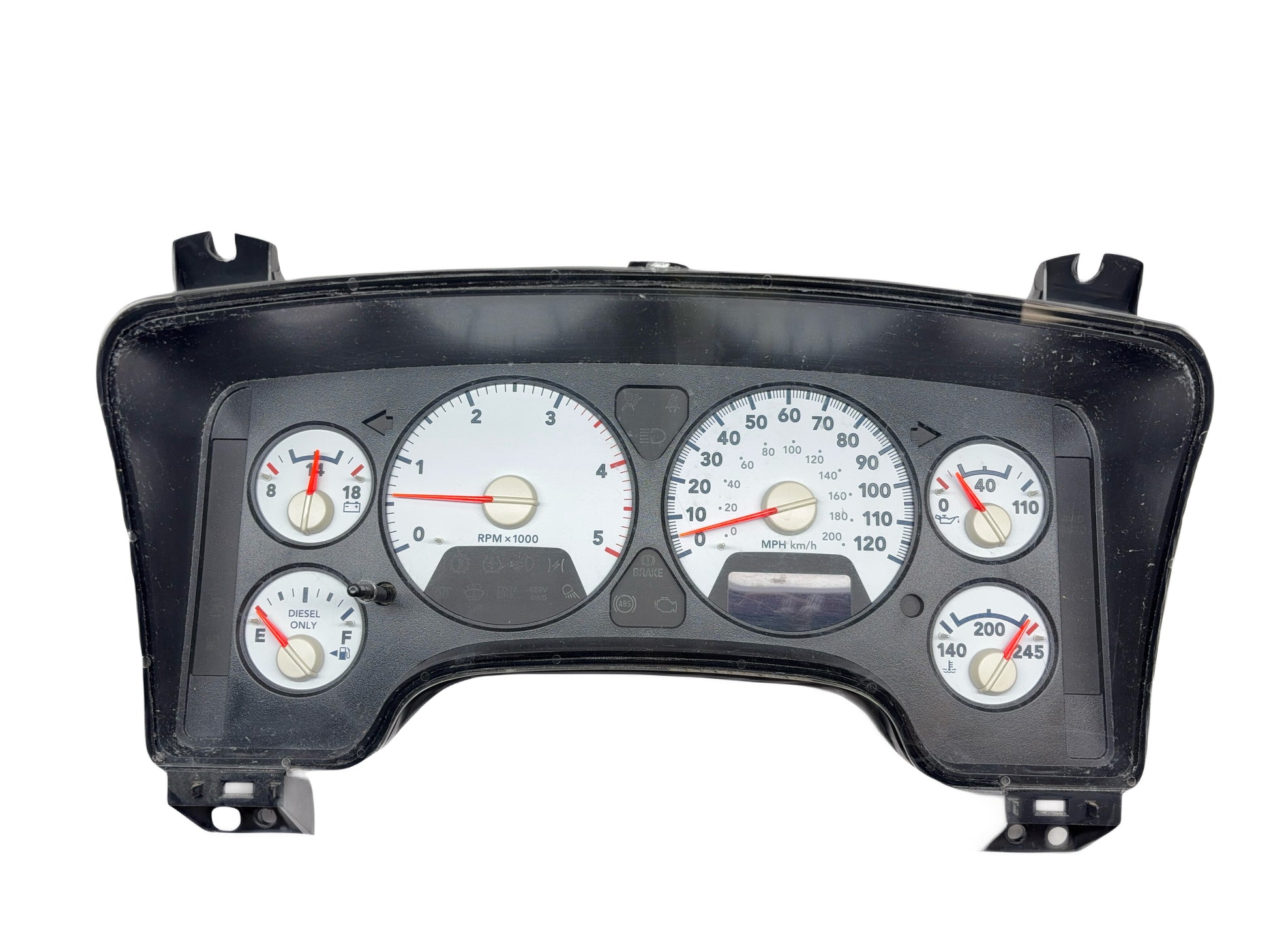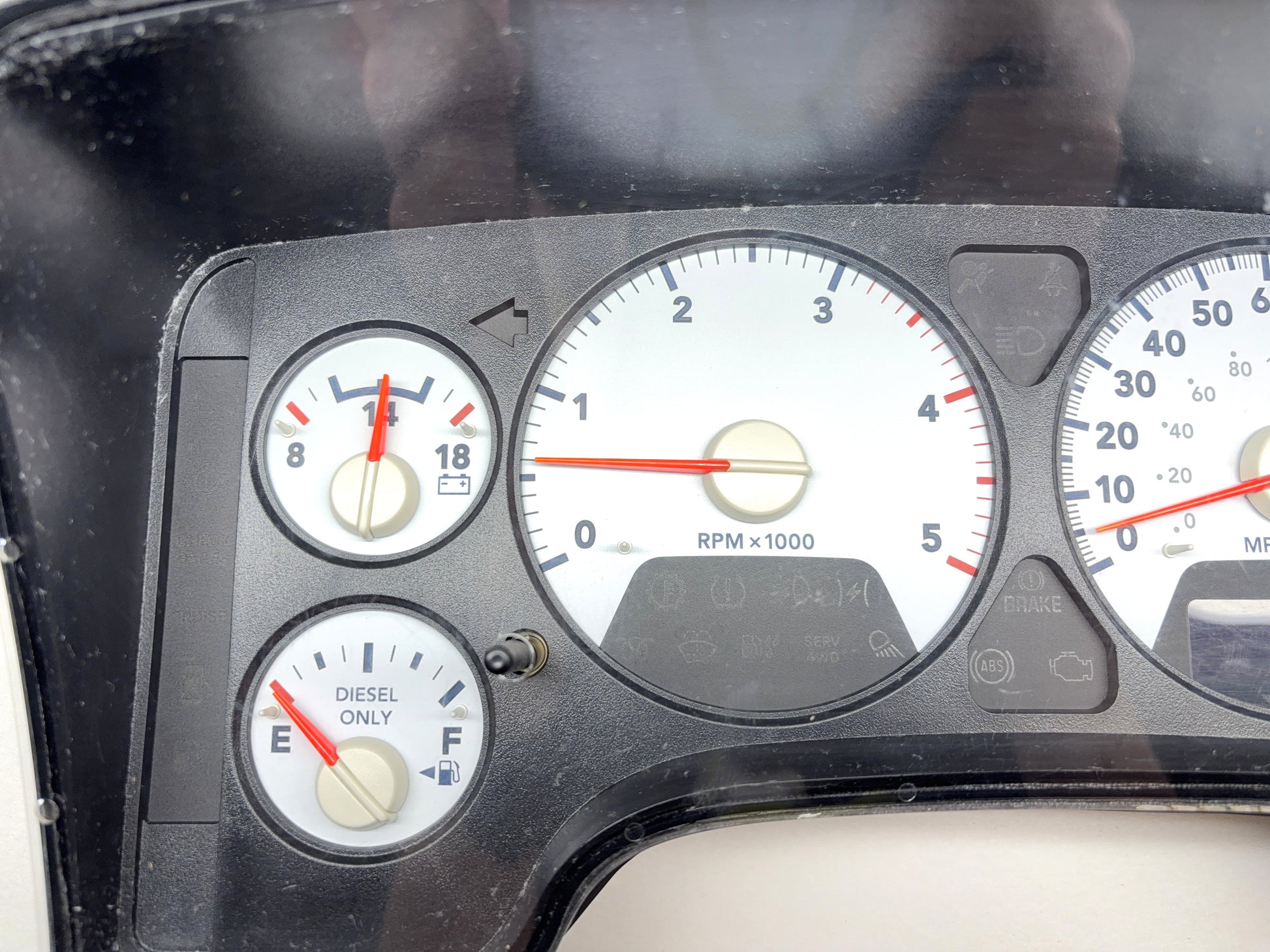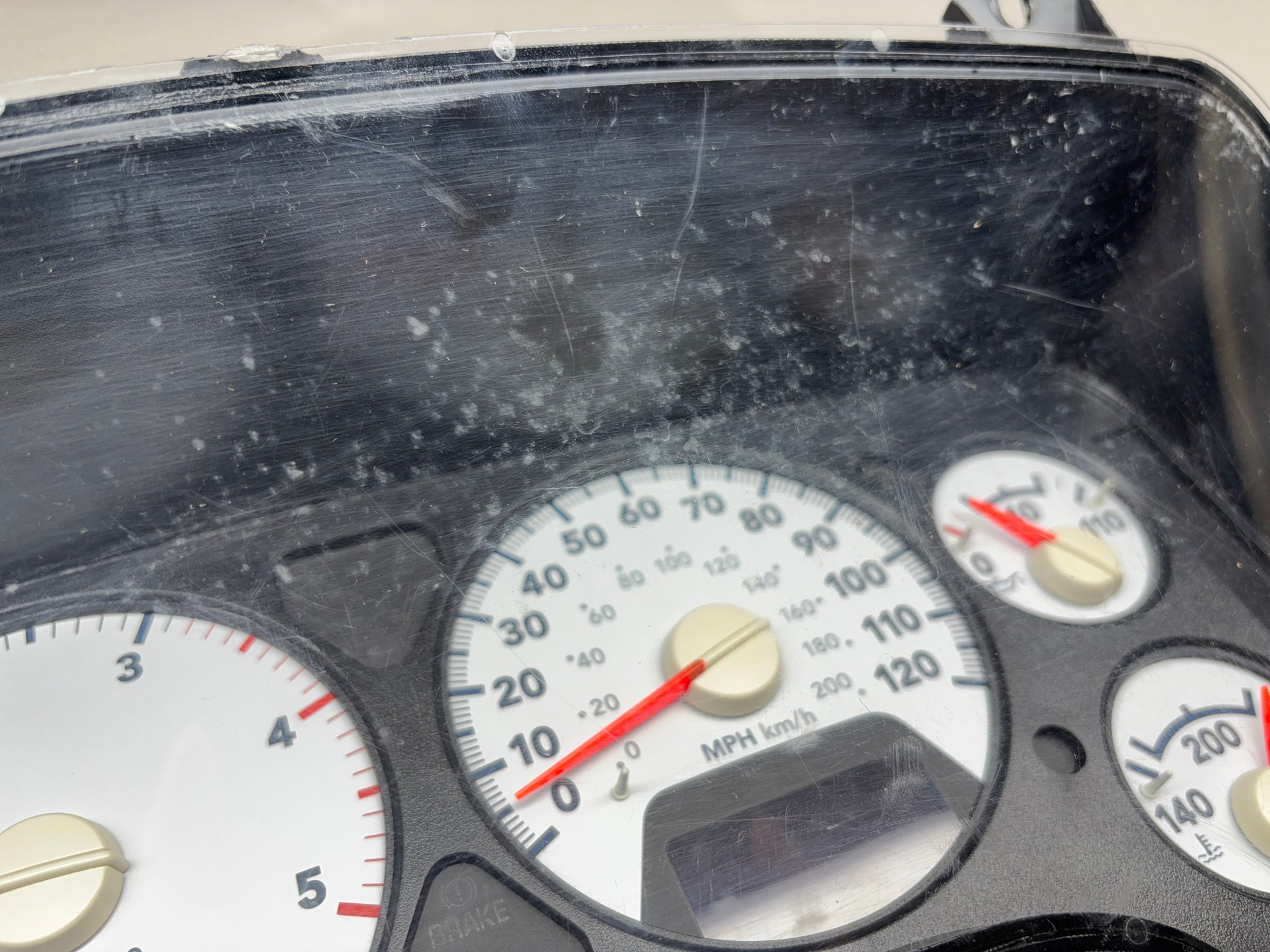 This is a used instrument cluster removed from a 2006 Ram 3500 with a 5.9L Cummins diesel engine. The Mopar part# is 56049834AF. It is in fair used cosmetic condition. The lens will show a small crack and minor but noticeable scuffs and scratches. This was removed from a high mileage truck, it will show almost 400k miles on the odometer.