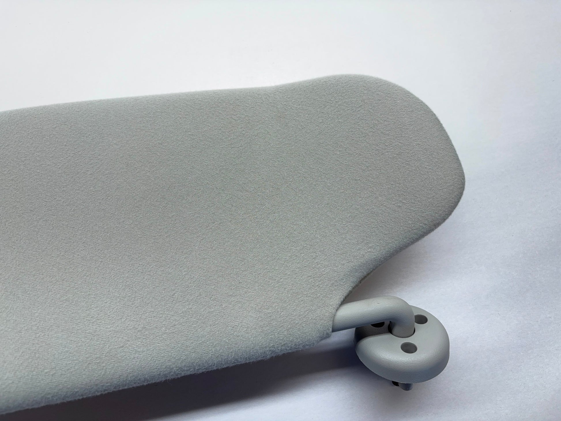 This is a used sun visor pair removed from a 2006 Ram 1500. They are in better than average condition, the paper storage pocket is a little stretched out and the mirror is quite scuffed. Aside from that, they are in nice used condition. This visor pair does not have lamps and it only has a mirror on the passenger visor. The Mopar part number for the driver side visor is 1CT17BD1AA and the part number for the passenger side visor is 1CT18BD1AA.