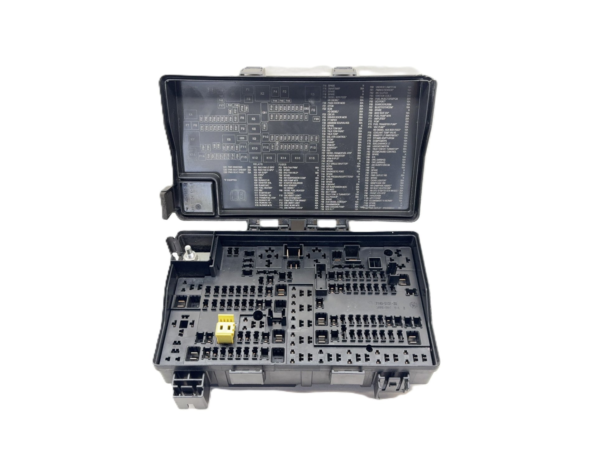This is a totally integrated power module, or TIPM removed from a 2015 Ram 1500. The Mopar part number is 68243257AB. It is being sold as parts only - there are no fuses included, this is the box only. The lid has a large chip and crack on one corner.